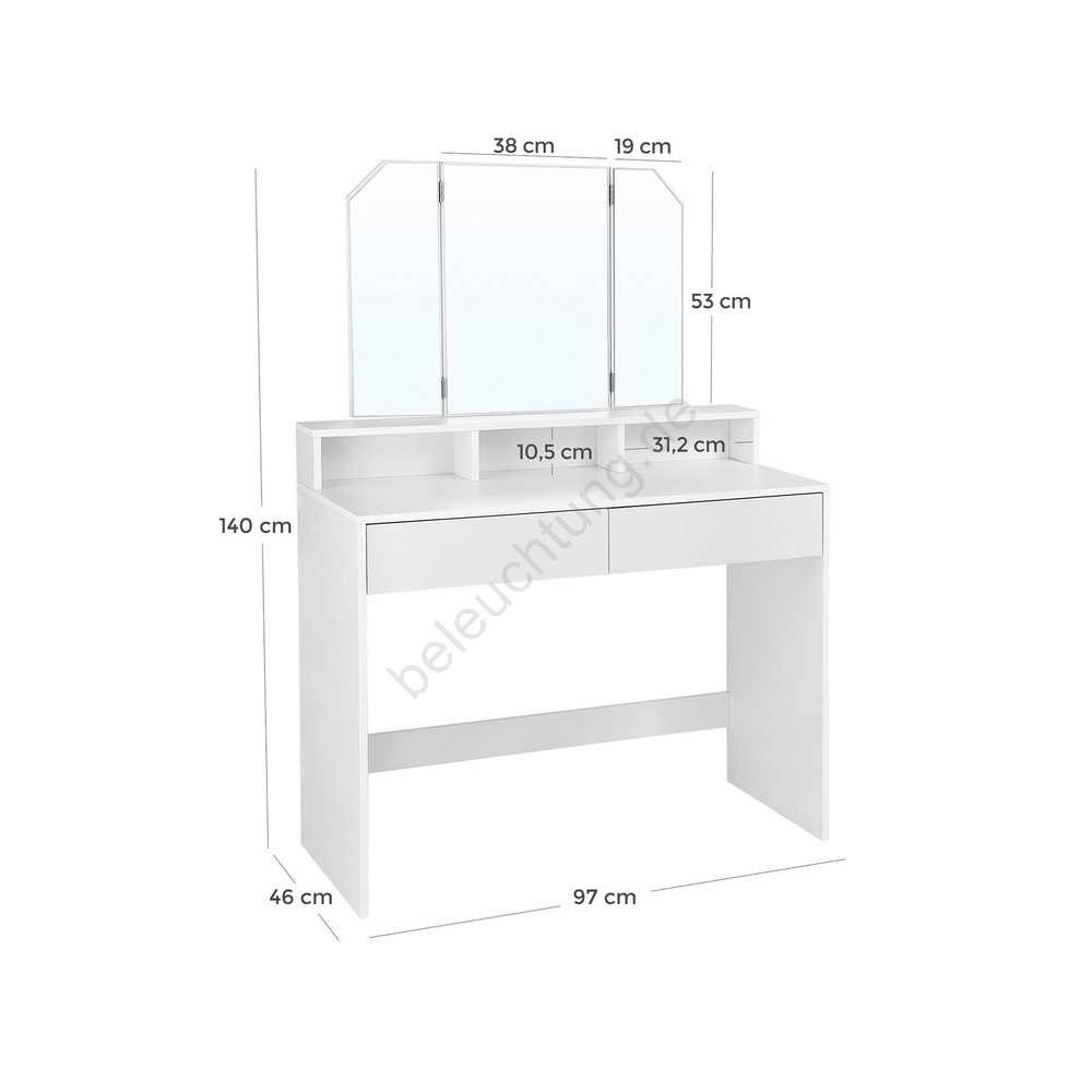 • 2 Schubladen und ein Regal darüber halten Ihre Kosmetik und Ihr Make-up stets griffbereit.