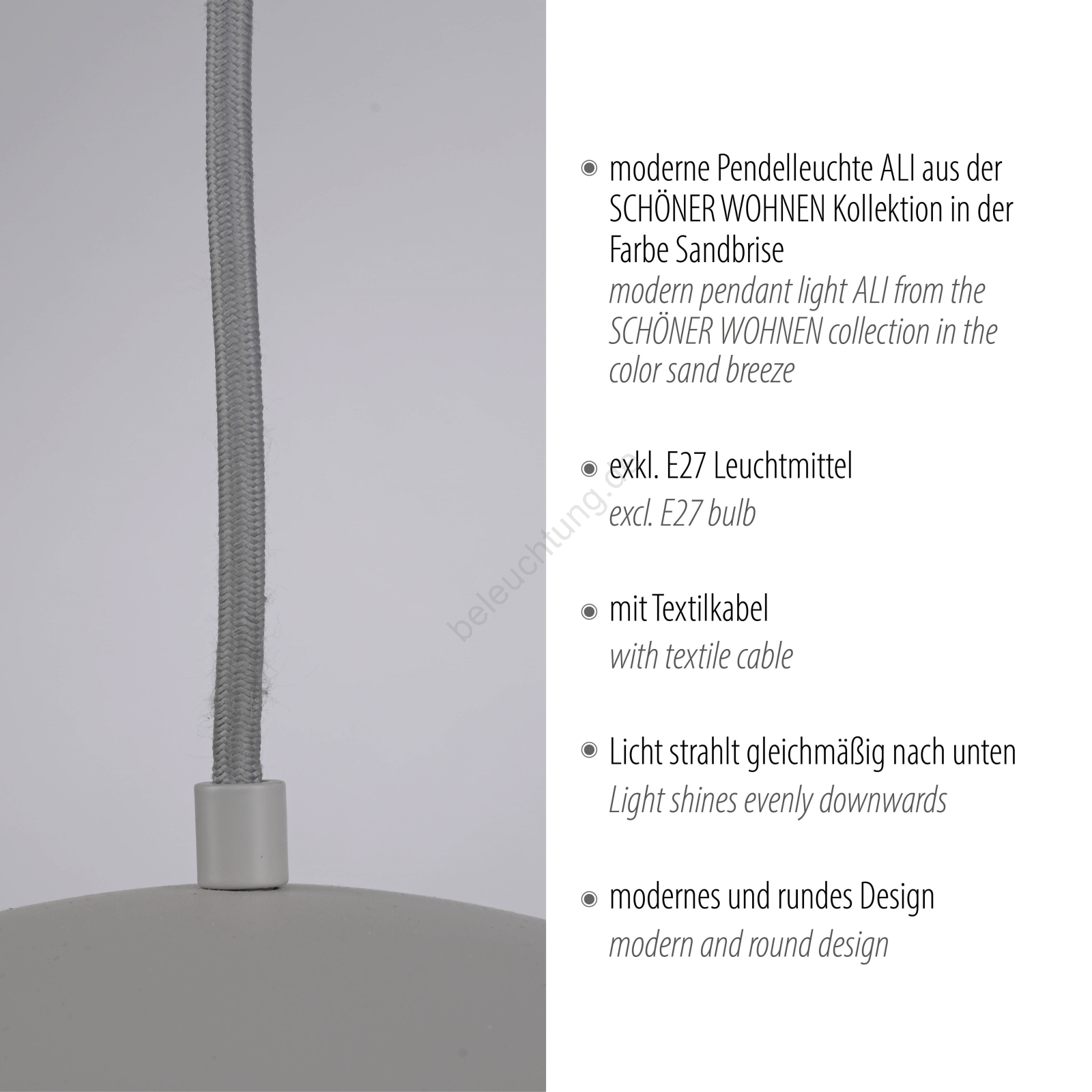 Schöner Wohnen 11728-39 - Pendelleuchte ALI mit Kabel, 1x E27/25W/230V, Ø 38 cm, grau zeichnet sich durch schönes und funktionales Design aus. Eine Glühbirne mit E27 Sockel ist für die Leuchte geeignet. Hier, können Sie andere Glühlampen zu vorteilhaften Preisen kaufen. Sie erhalten eine attraktive Ergänzung für Ihr Zuhause.