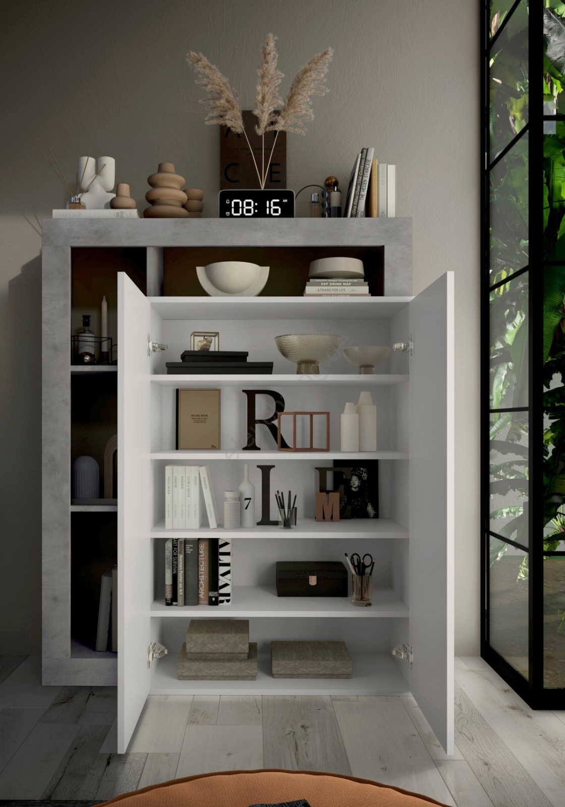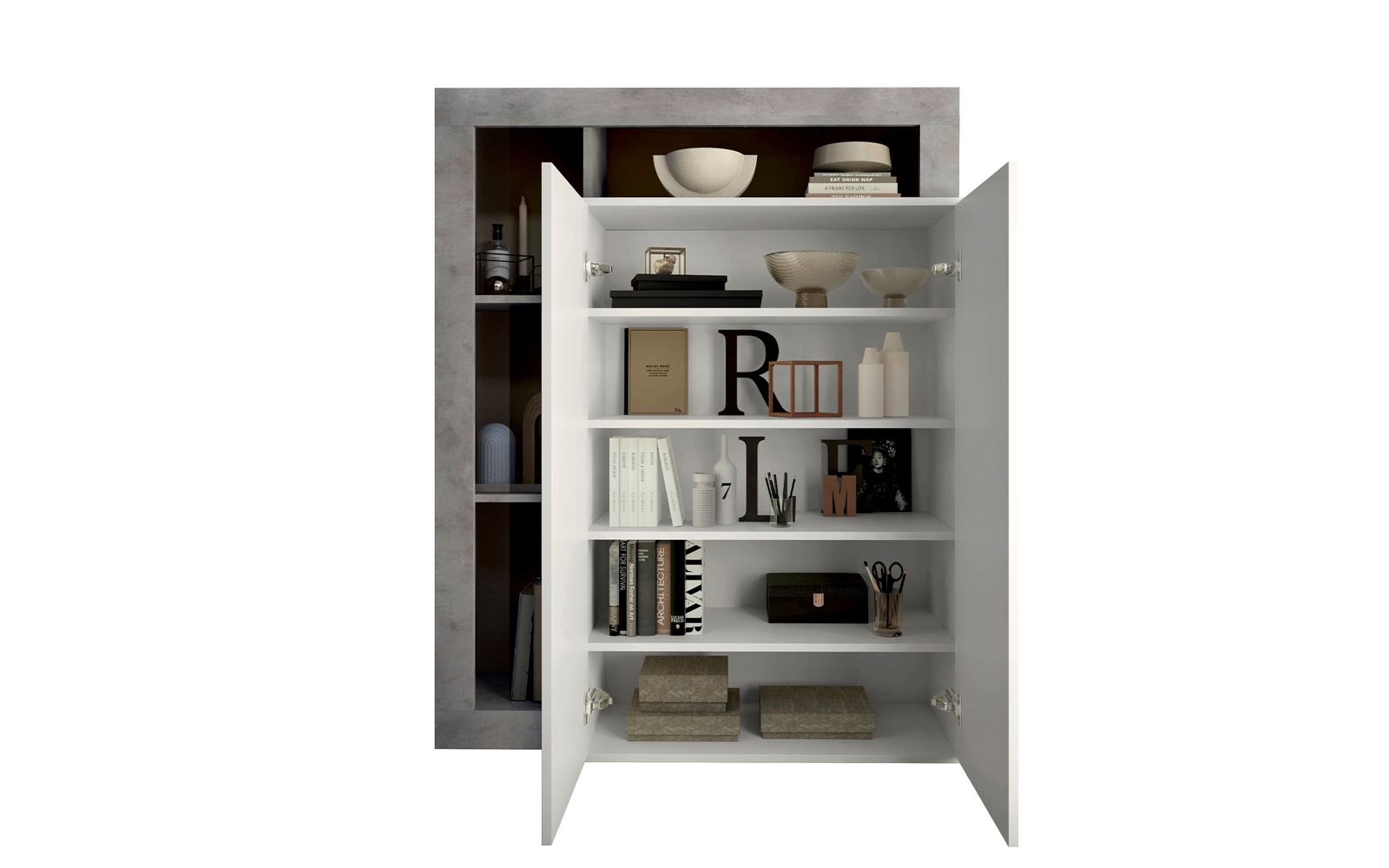 Schrank LENOR weiß/grau Betonoptik
