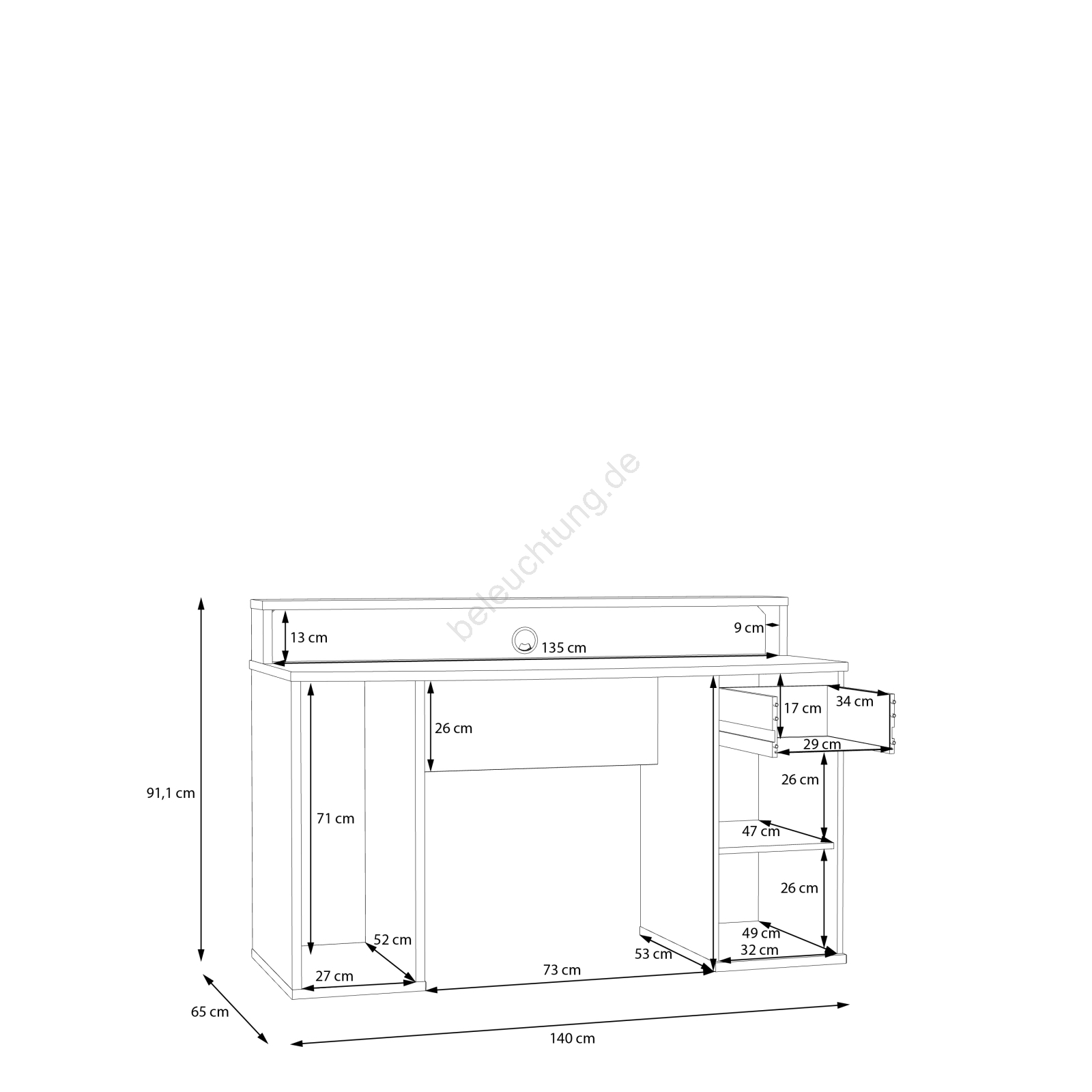 • Dank Schublade und Ablagefach bietet er großzügigen Stauraum zur Organisation Ihrer Alltagsgegenstände.