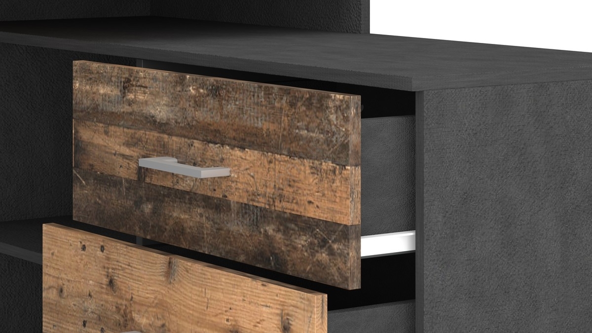 • Schreibtisch mit Schubladen und universellem Eckmodul (rechts/links) JULES Eiche Artisan/Anthrazit