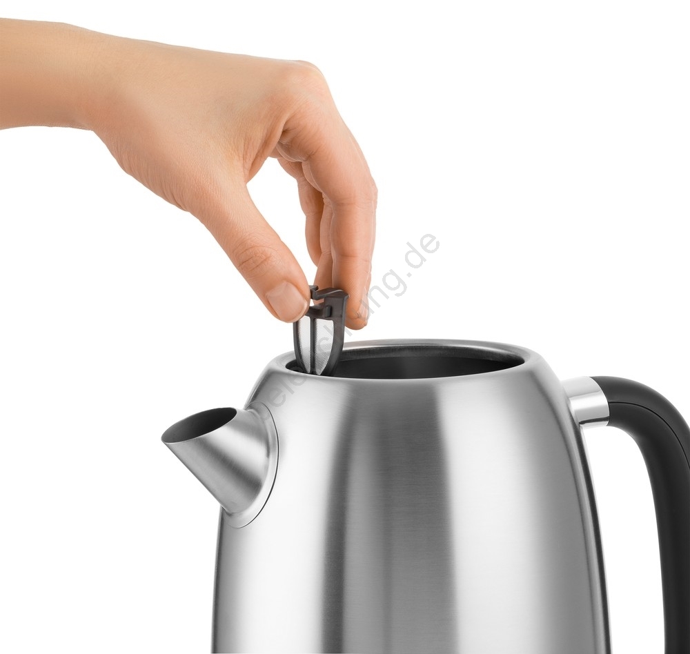 • Der Wasserkocher verfügt über einen herausnehmbaren und waschbaren Filter, der Schmutz und Ablagerungen auffängt.