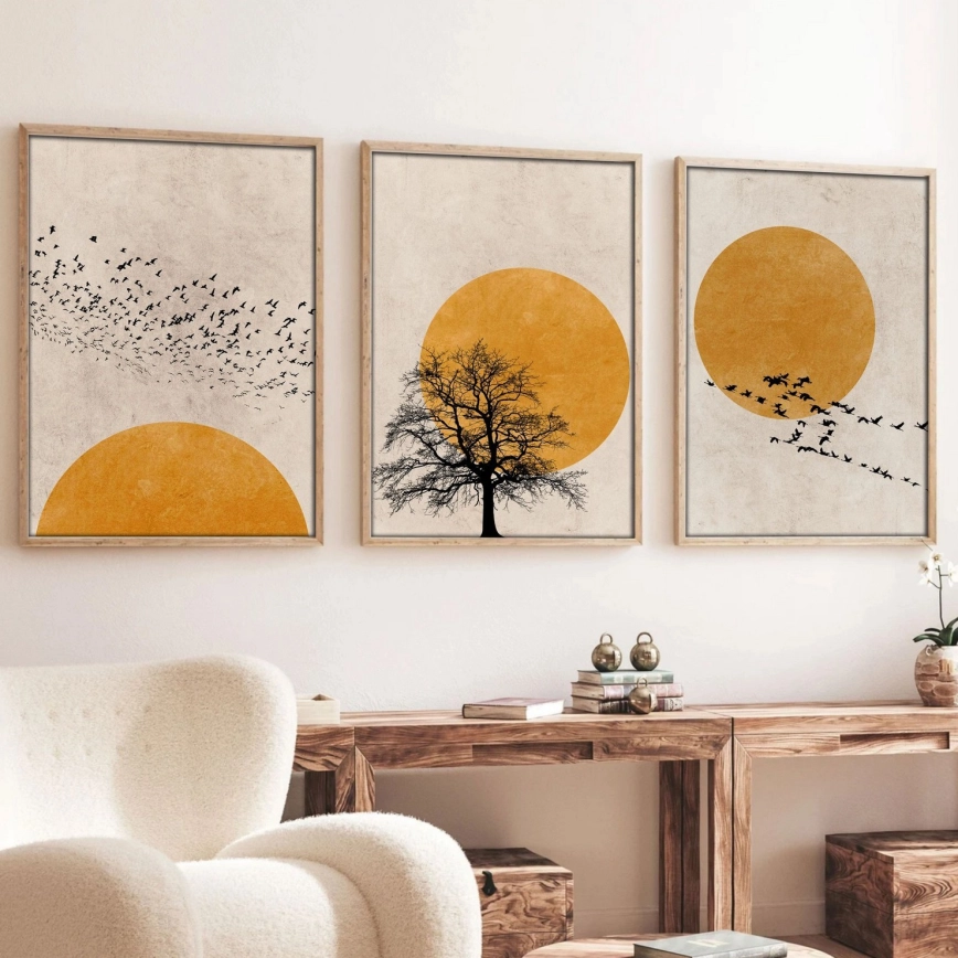 3er-Set gerahmte Bilder, 50x70 cm, Beige/Orange
