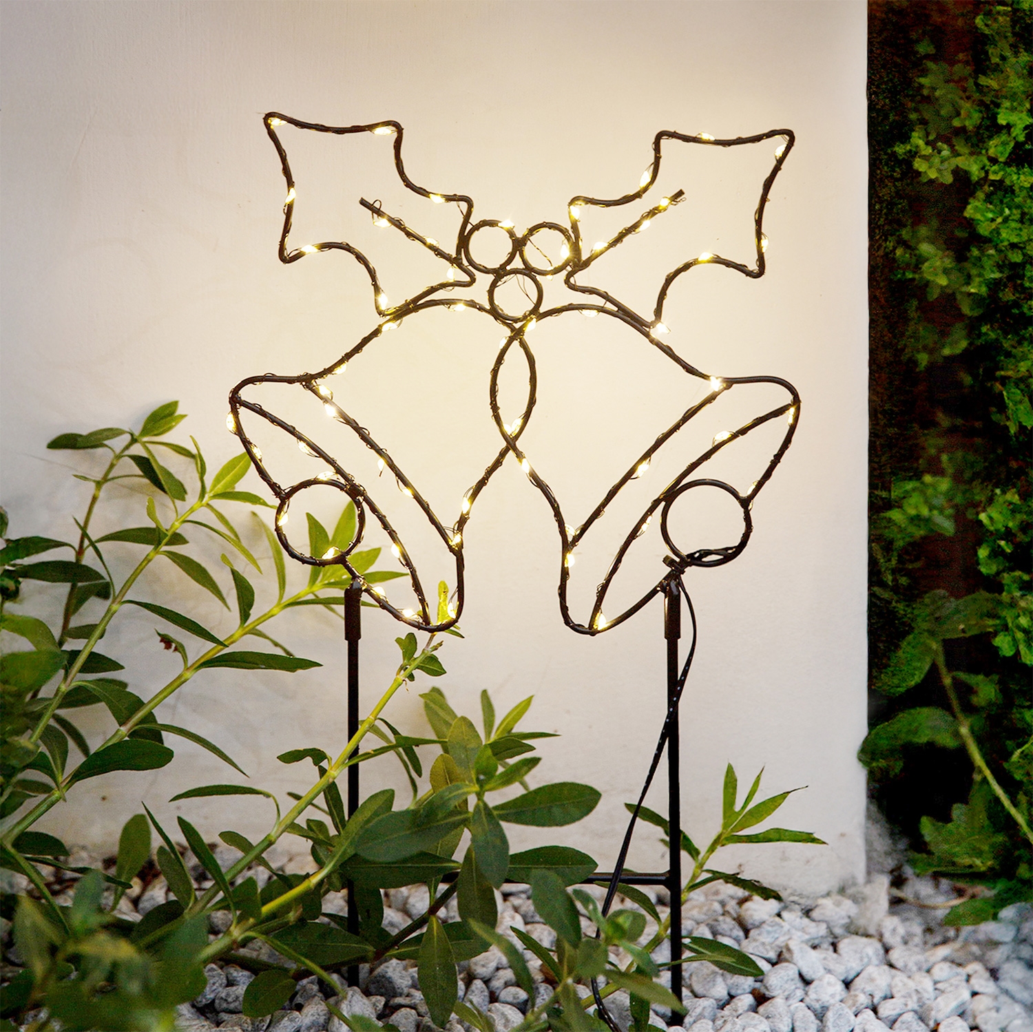 LED-Weihnachtsdekoration für den Außenbereich, 100 LEDs / 3×AA, IP44, warmweiß, Glocken