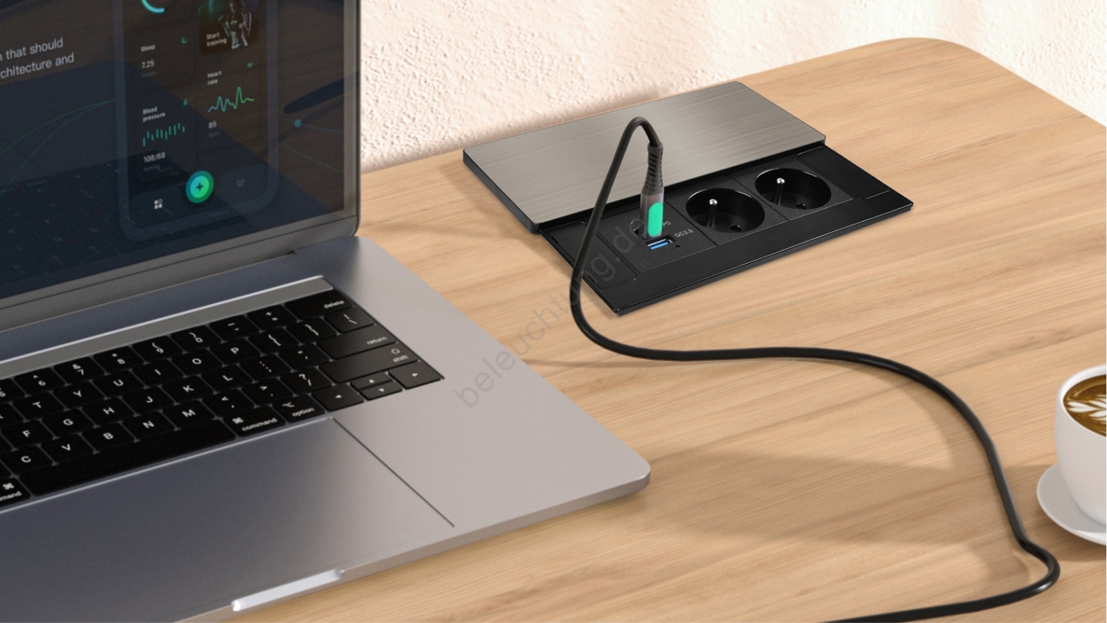Einbausteckdose mit kabellosem 20W-Laden, 2 Steckdosen + USB-A + USB-C