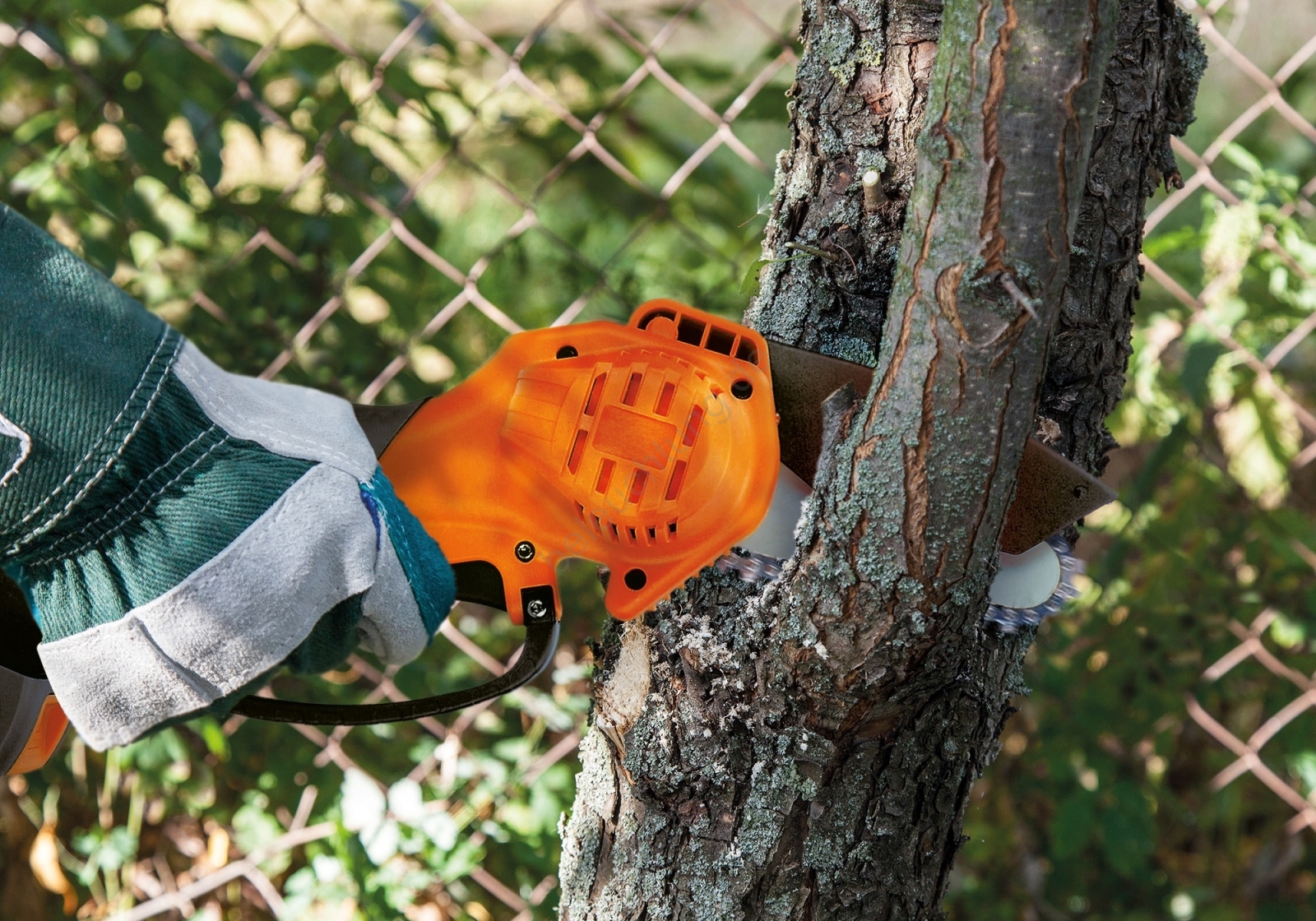 • Handgeführte Akku-Kettensäge.