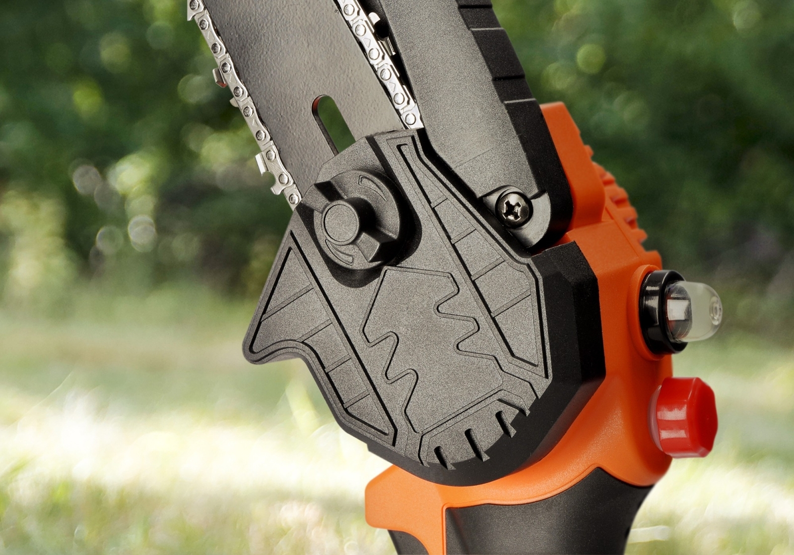 • Handliche Akku-Kettensäge.