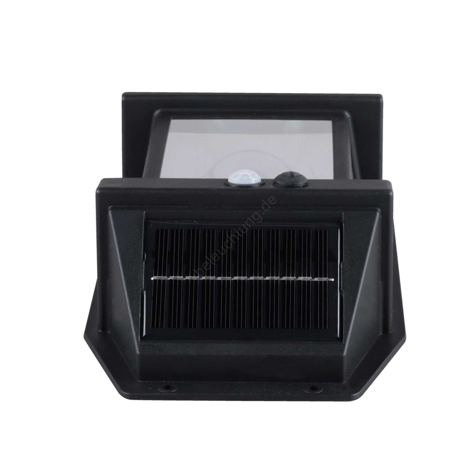 • LED-Solar-Wandlampe für den Außenbereich mit integriertem Leuchtmittel.