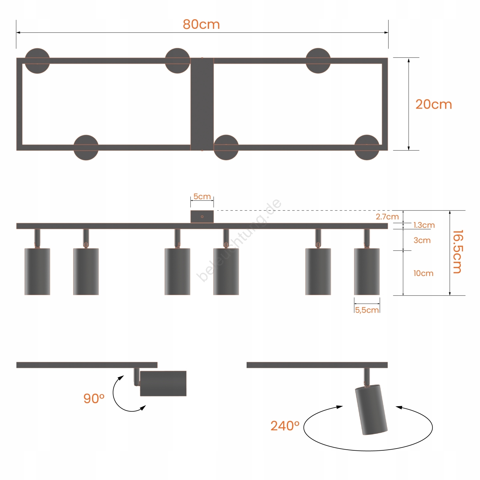 Spotleuchte 6xGU10/30W/230V schwarz zeichnet sich durch schönes und funktionales Design aus. Eine Glühbirne mit GU10 Sockel ist für die Leuchte geeignet. Hier, können Sie andere Glühlampen zu vorteilhaften Preisen kaufen. Sie erhalten eine attraktive Ergänzung für Ihr Zuhause.