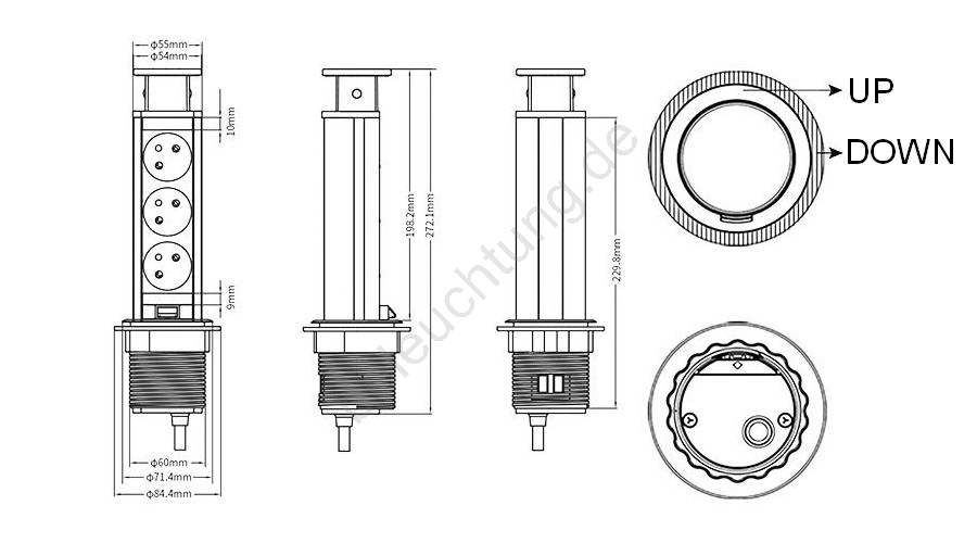 • Anschluss-Säule – einschiebbares 3-fach-Steckdosenmodul (Verteiler), ideal für Arbeitsplatten, Schreibtische sowie Küchen und Möbel – einfach überall dort, wo Sie Steckdosen benötigen.