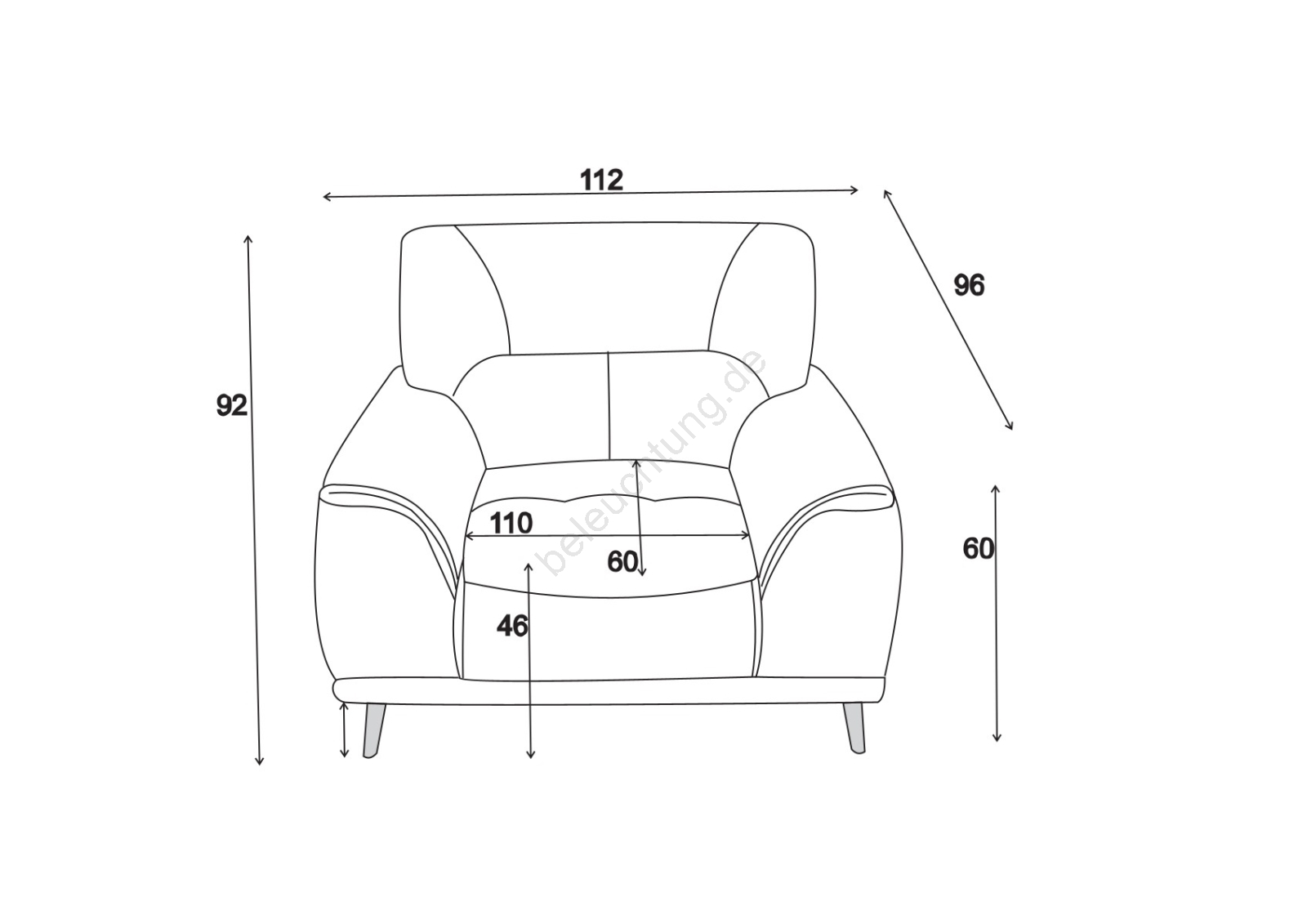 • Mit einer Höhe von 92 cm, einer bequemen Sitzhöhe von 46 cm und einer Tiefe von 60 cm bietet er ergonomisches und entspannendes Sitzen.