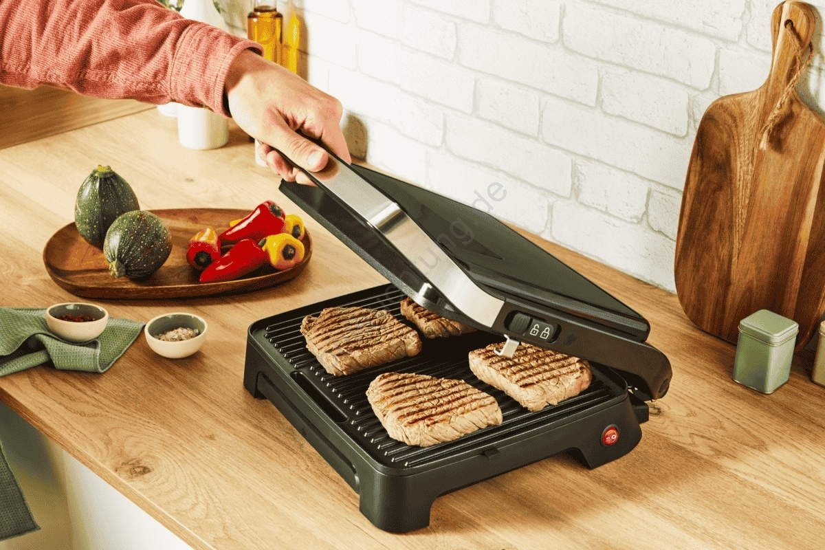 • Antihaftplatten für einfaches Grillen und Reinigen, inklusive Fettauffangschale – erleichtert die Pflege und erhöht die Hygiene.