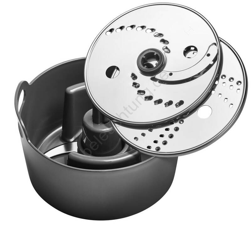 • Enthält außerdem ein Aufbewahrungssystem, das alle Schneid-, Zerkleinerungs- und Knetwerkzeuge ordentlich im Arbeitsbehälter verstaut.