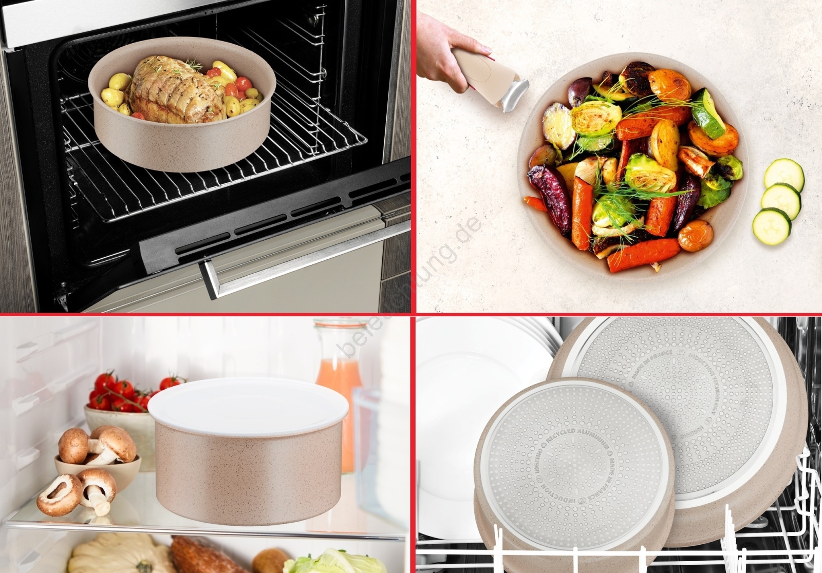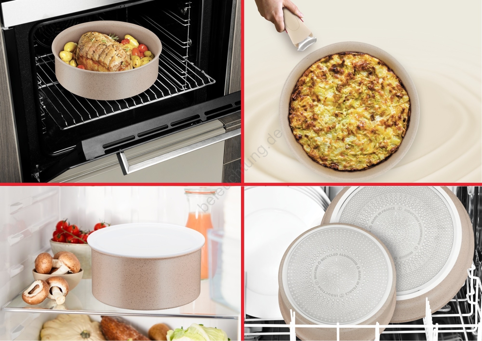 • Das Kochgeschirr ist backofengeeignet bis 250 °C (ohne Griff).