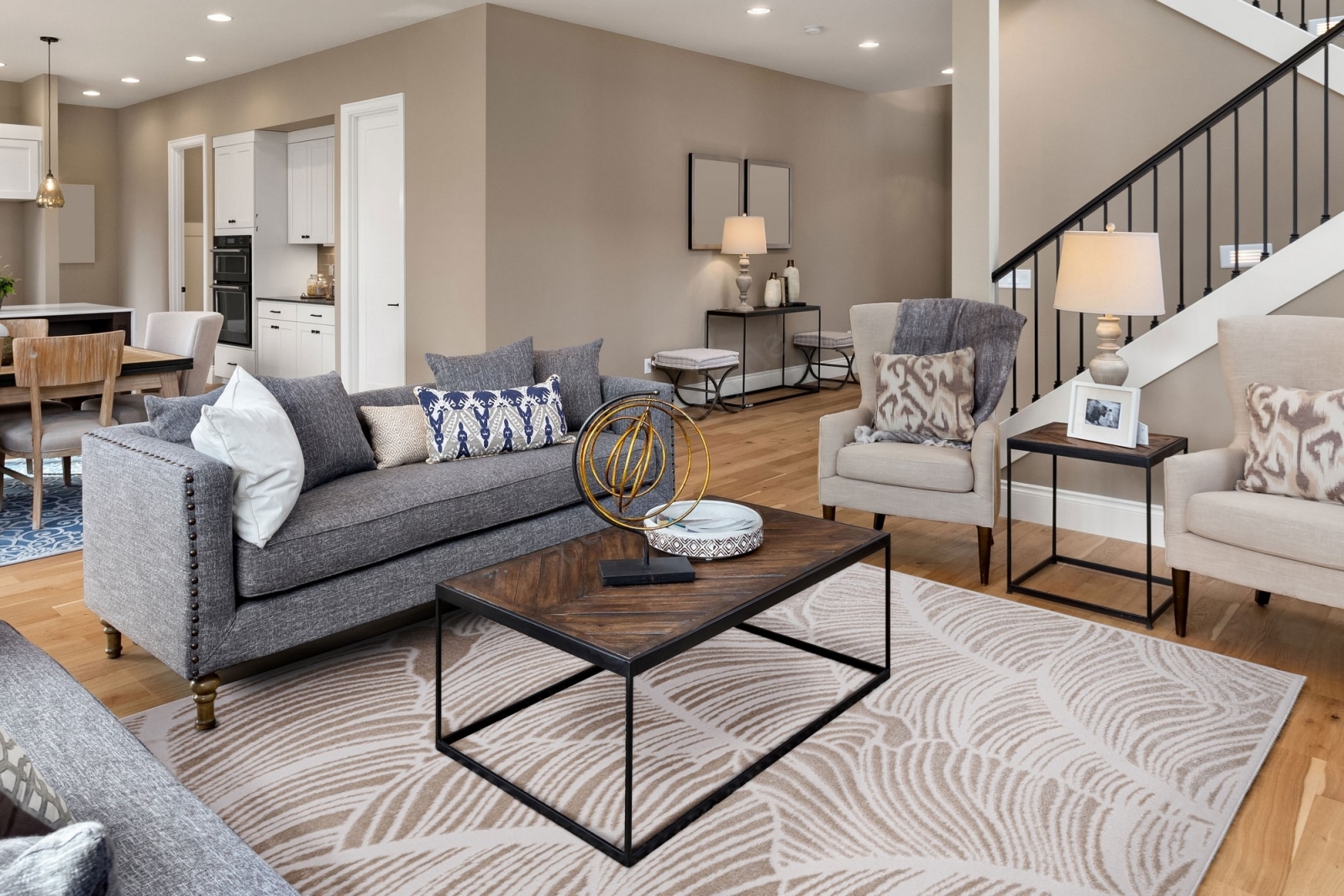 • Ein zarter beiger Teppich mit dezentem Blattmuster verleiht jedem Raum eine Note von Leichtigkeit und Gemütlichkeit.