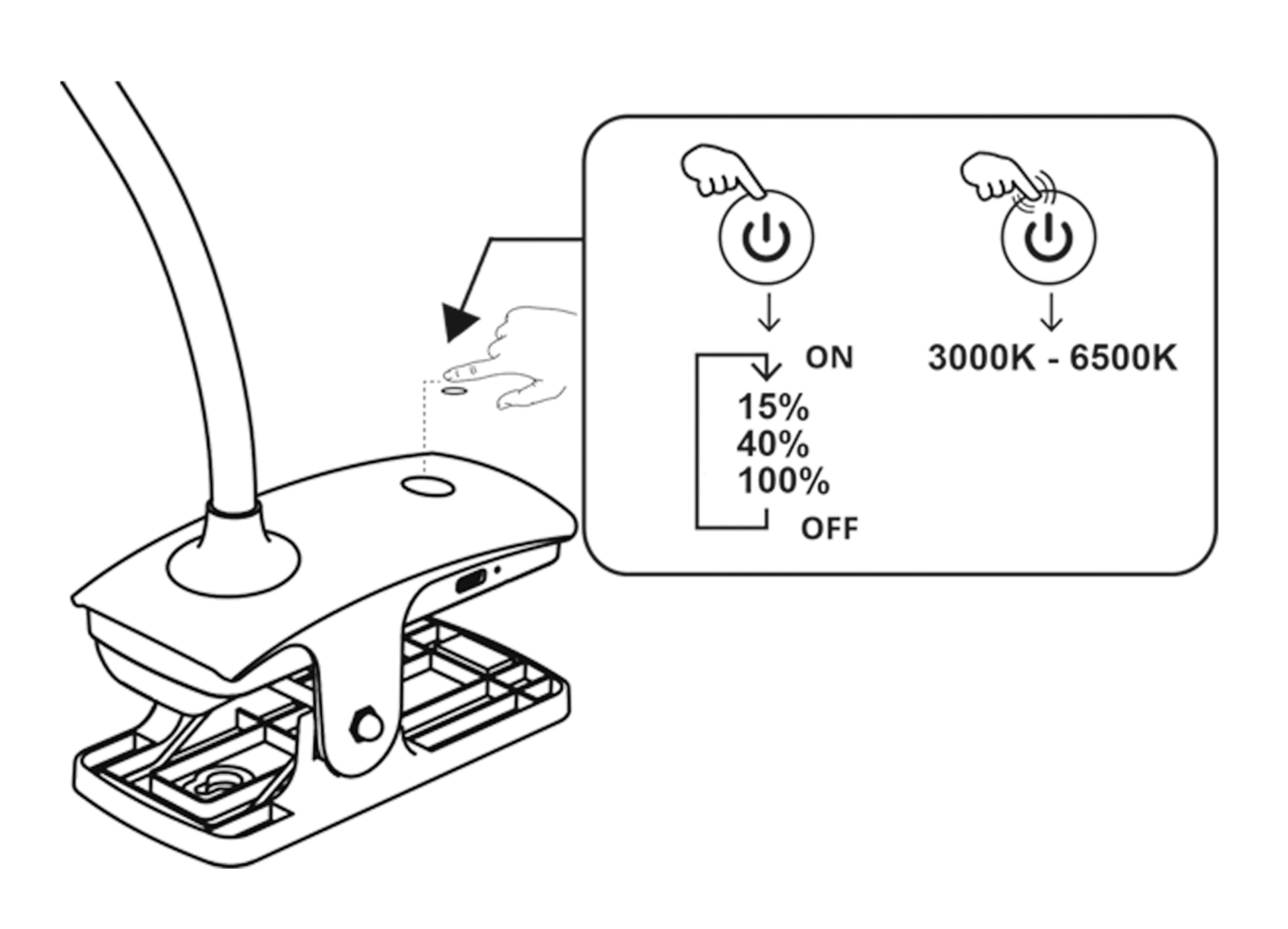 • Top Light - LED-dimmbare Touch-Tischlampe mit Clip BELLA LED/4,8W/5V 3000-6500K schwarz