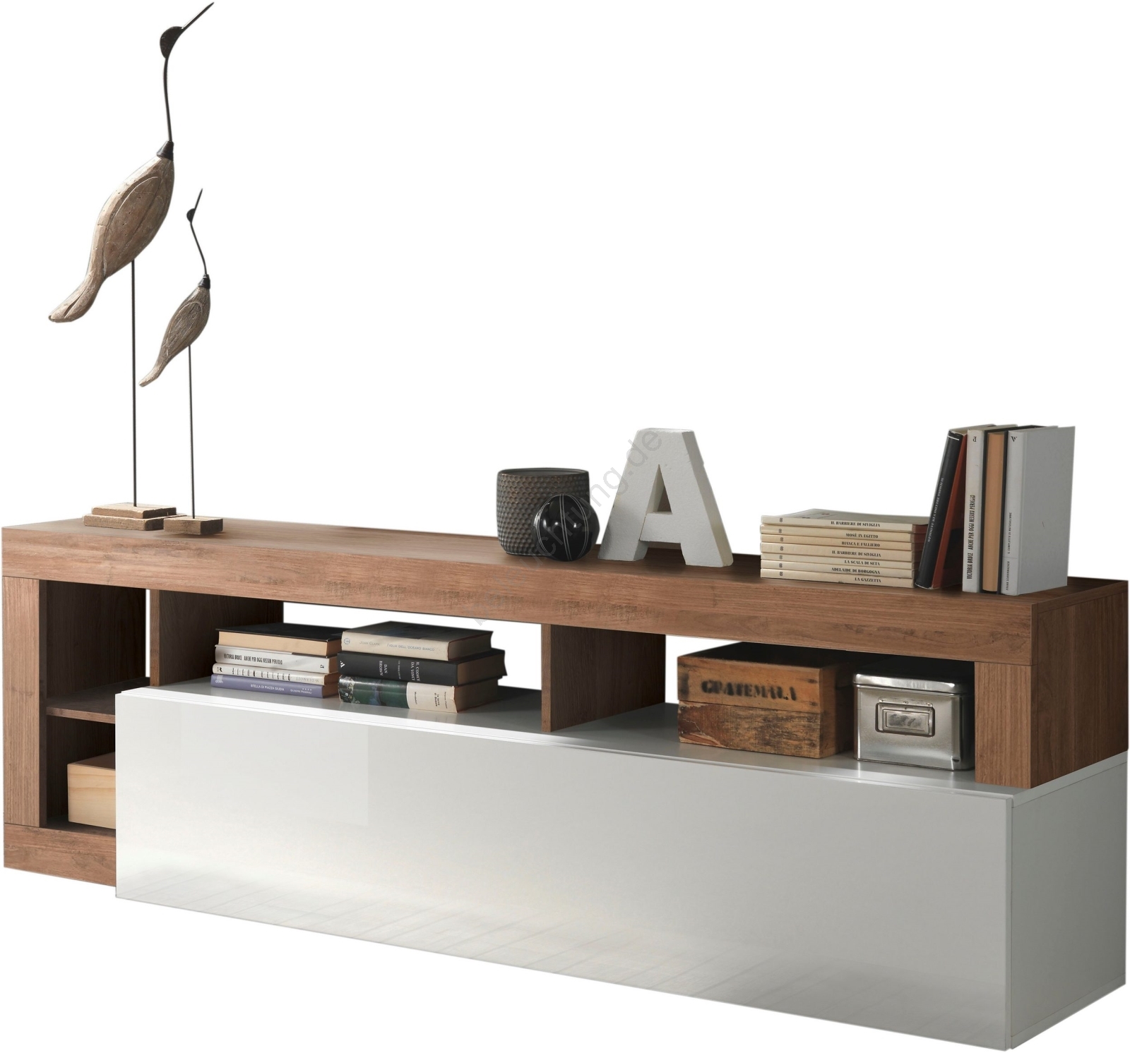 • TV-Lowboard LENOR Weiß/helle Eiche