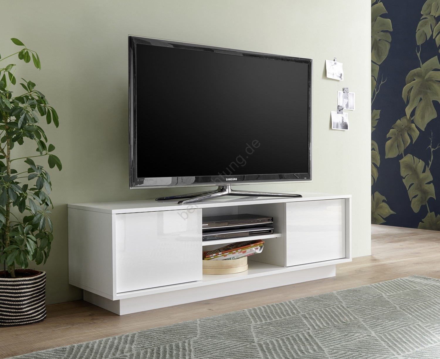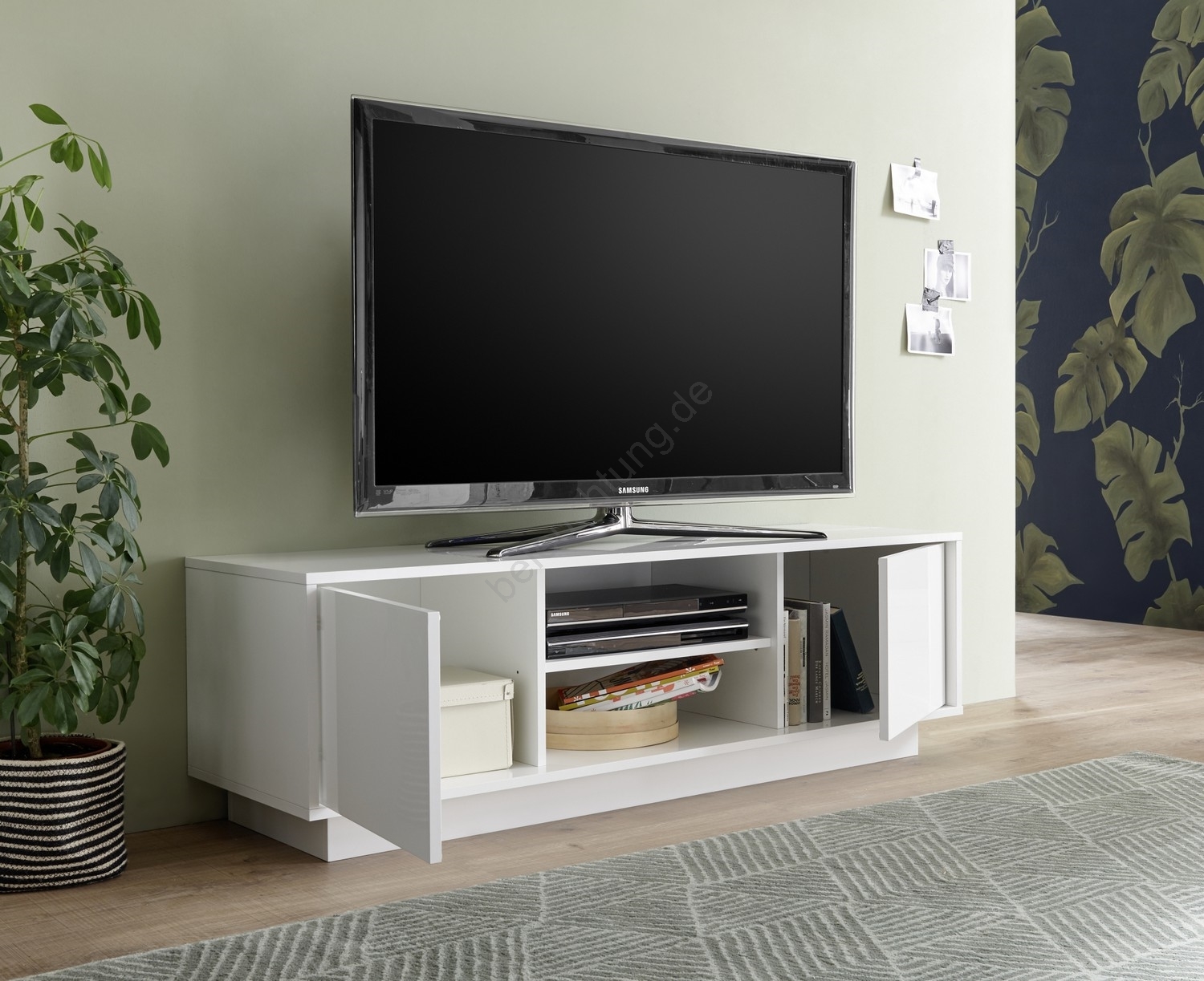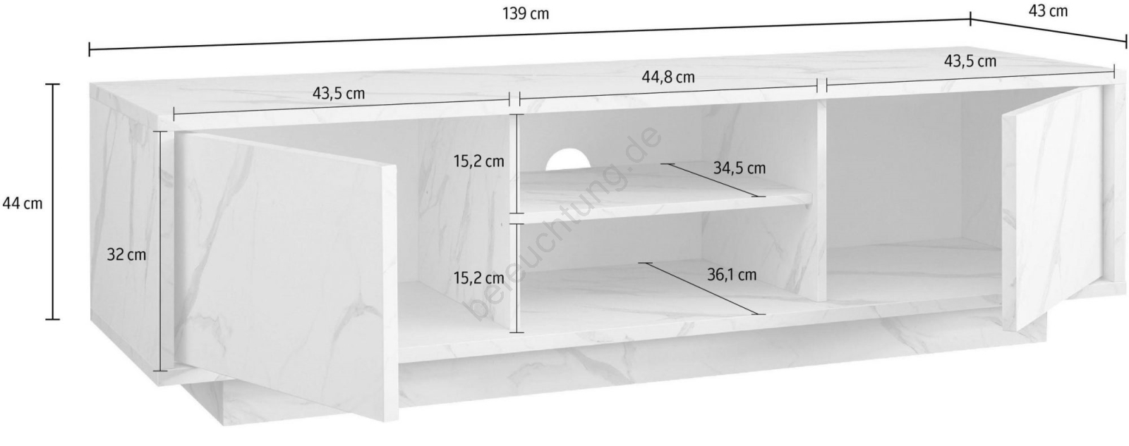 • Untere Fächer und offene Ablagen bieten Platz für Bücher, Dekorationen und Haushaltsgegenstände.