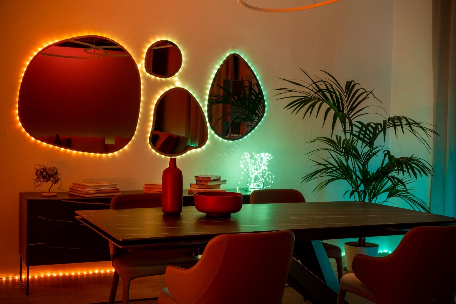 • Auch völlig individuelle Kombinationen aus Farben, Helligkeit, Mustern, Rotation und Wechselgeschwindigkeit sind möglich.