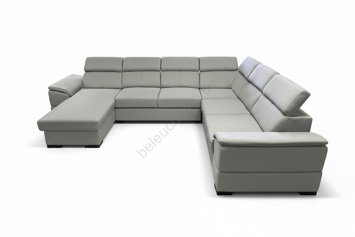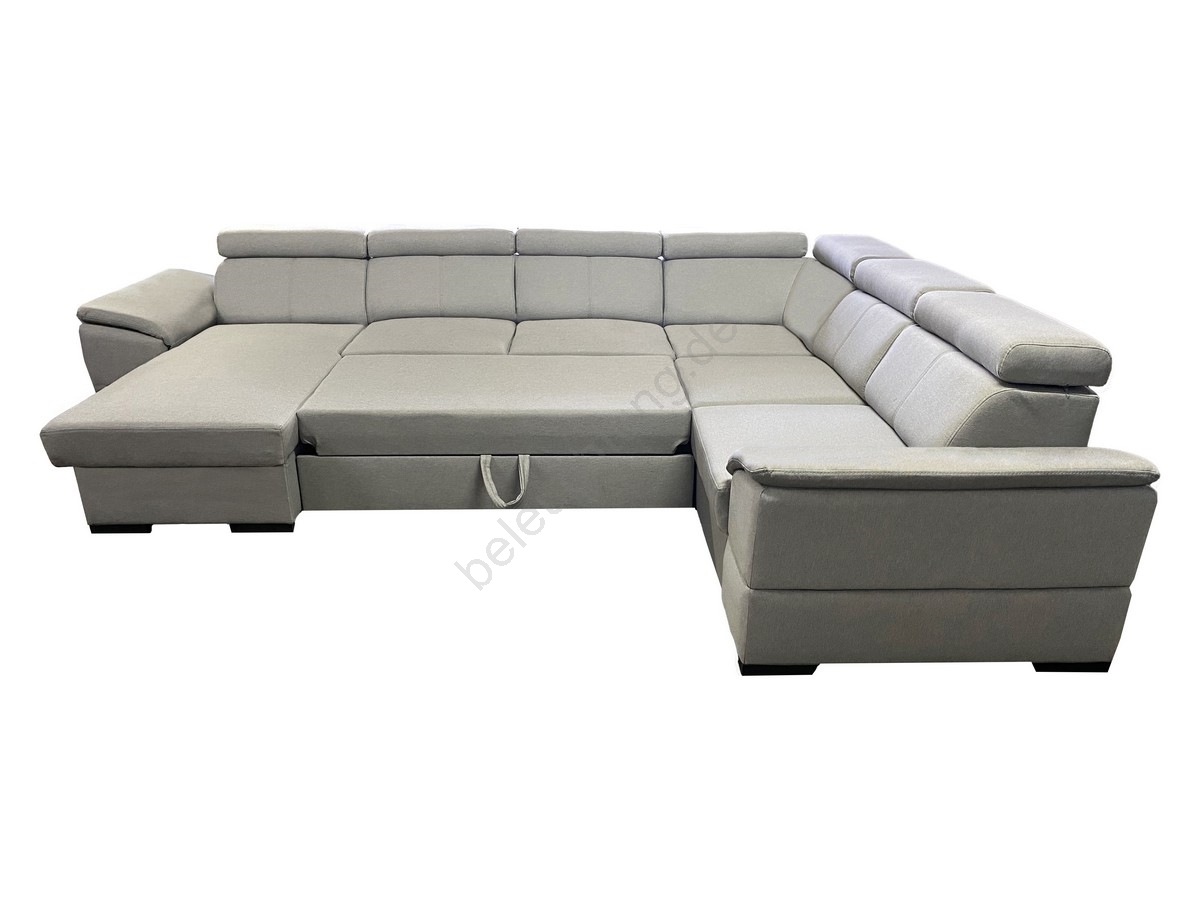 • Ausziehbares U-Ecksofa mit universellem Eckteil und Stauraum GRANADA, hellgrau