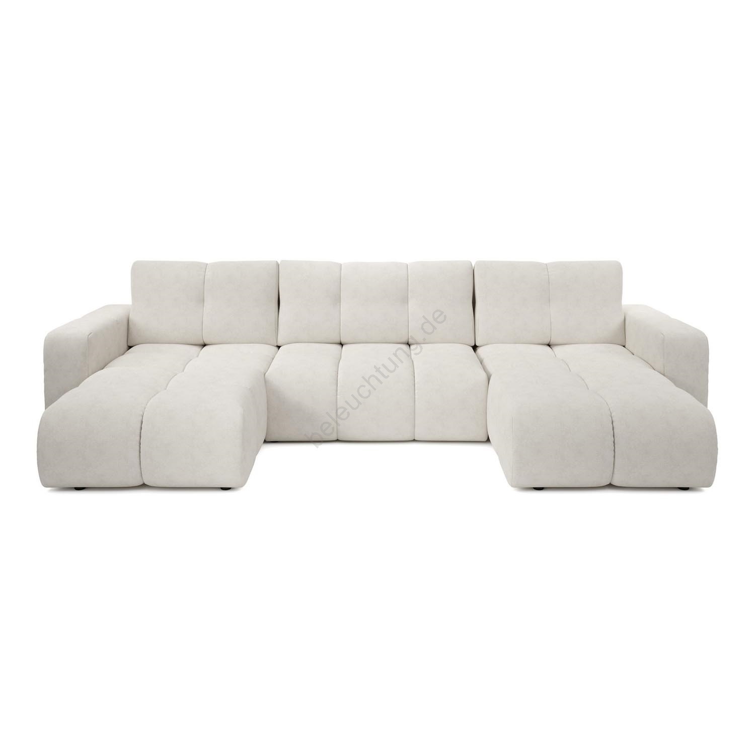 • U-förmige, ausklappbare, gepolsterte Sofagarnitur ALMADA mit Stauraum, beige