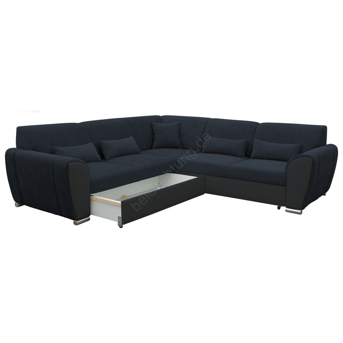 • Ausziehbares Ecksofa VISEU in L‑Form mit Stauraum, rechts, Anthrazit/Schwarz