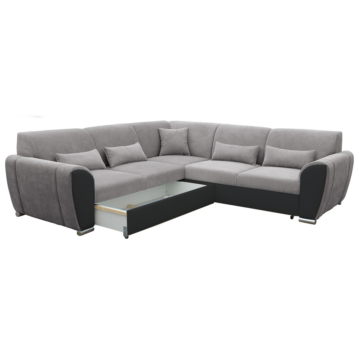 • Ausziehbares Ecksofa VISEU in L‑Form mit Stauraum, rechts, Anthrazit/Schwarz