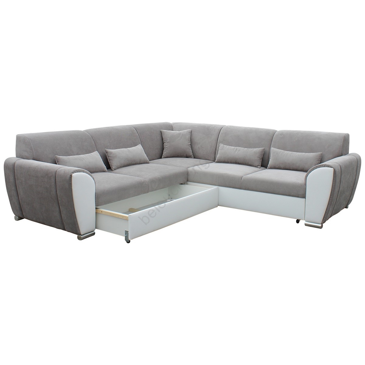 Ecksofa VISEU in L‑Form mit Schlaffunktion und Stauraum, links, grau/weiß