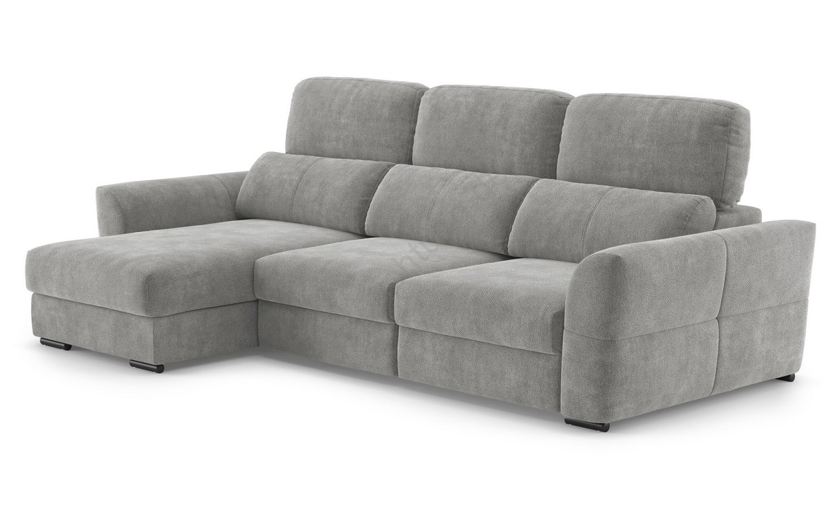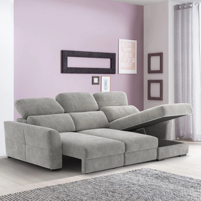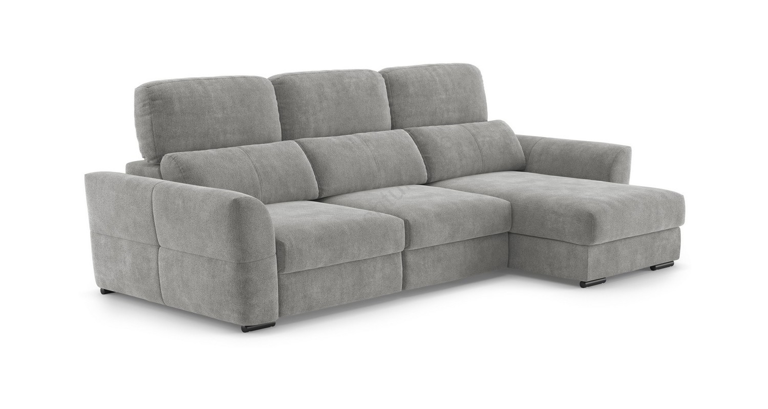 Beidseitig montierbares, ausziehbares 3‑Sitzer-Ecksofa mit Stauraum TRENTO, hellgrau