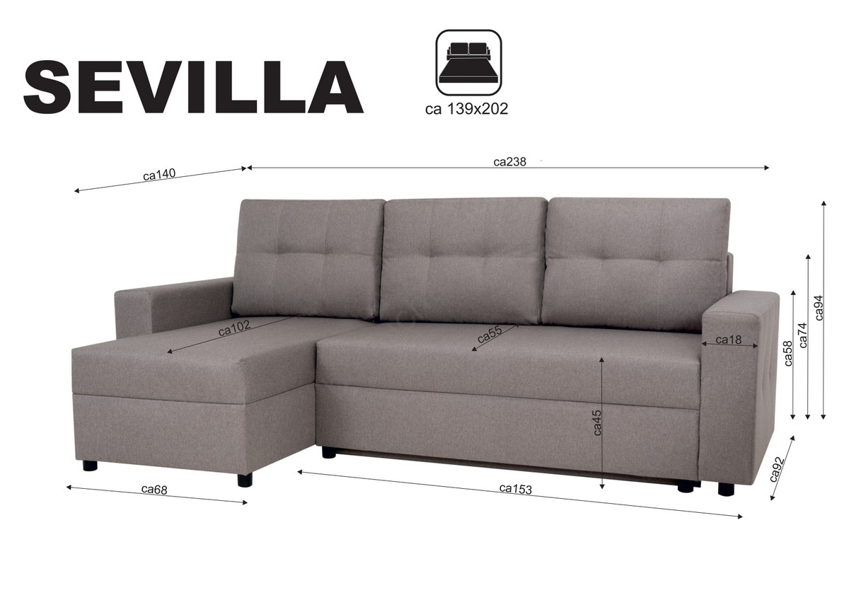 Universelles Ecksofa mit Schlaffunktion und Stauraum SEVILLA in Grau