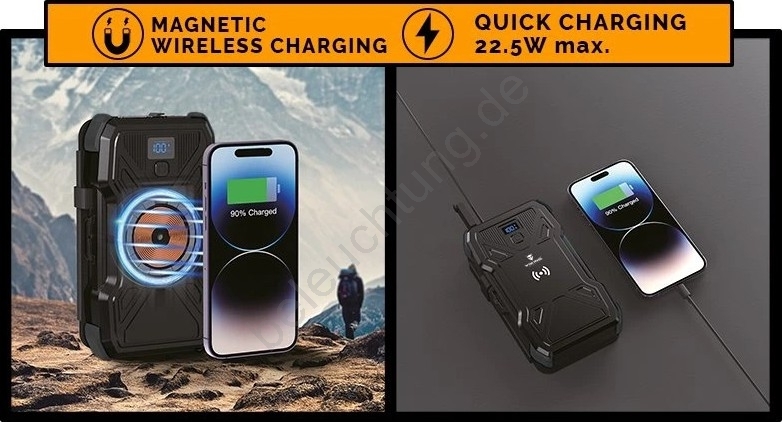 • Durch das Magnetfeld startet das kabellose Laden noch einfacher und Ihr Gerät rutscht nicht aus dem Ladebereich der Powerbank.