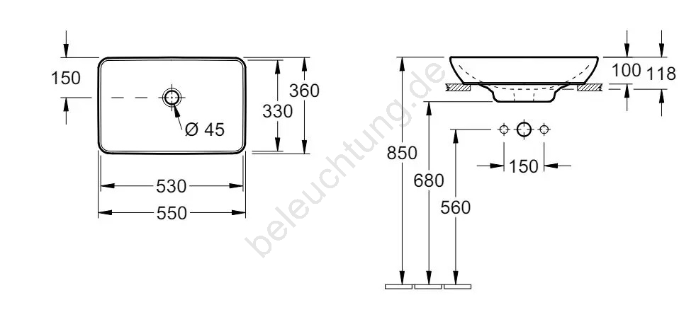 Villeroy & Boch 41135501 - Aufsatzwaschbecken VENTICELLO 55,5x36 cm Keramik/weiß