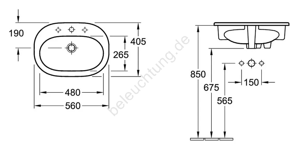• Waschtischarmatur und Ablaufgarnitur sind nicht im Lieferumfang enthalten.