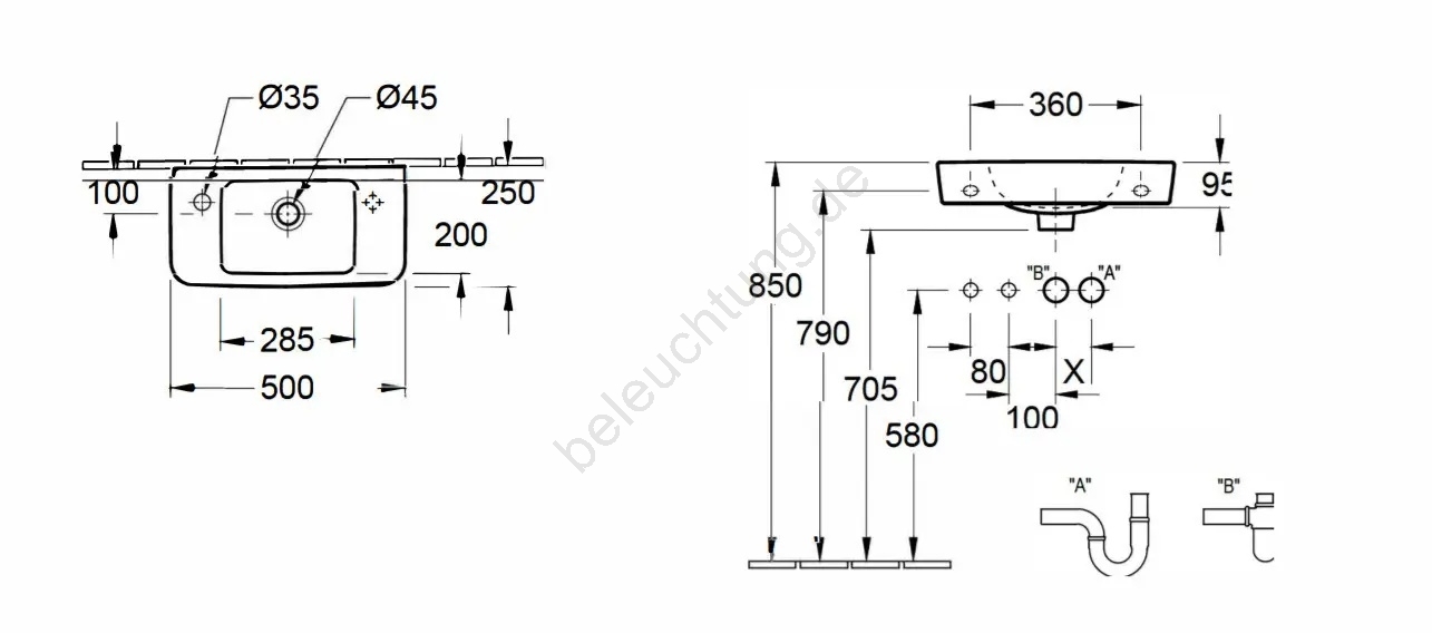 • Waschbeckenarmatur und Ablaufgarnitur sind nicht im Lieferumfang enthalten.