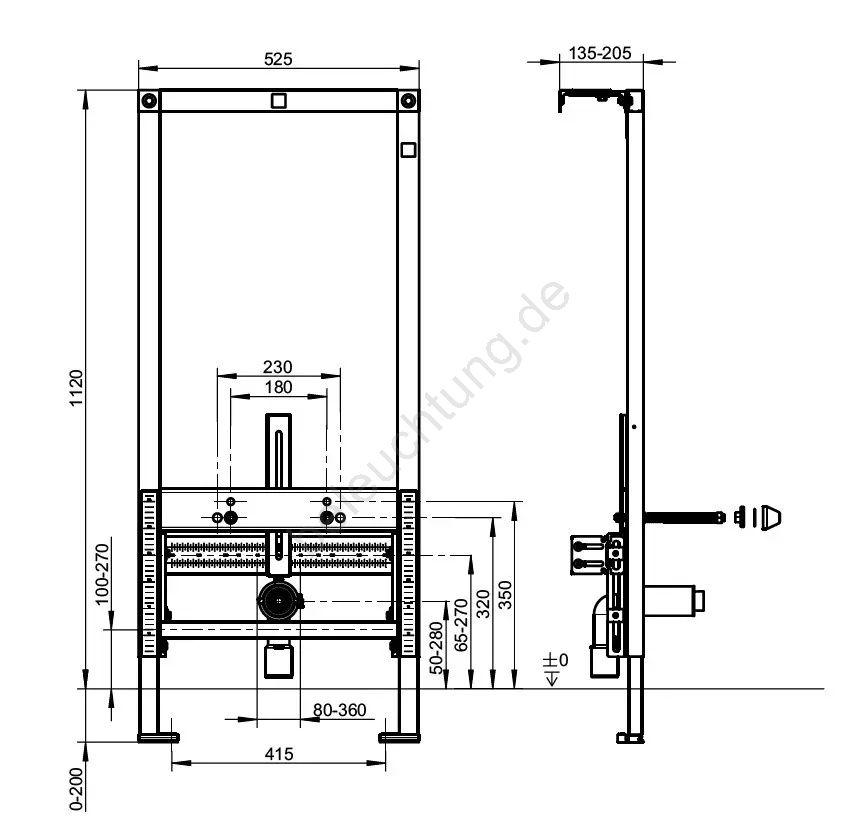 • Einstellung ab Fußbodenhöhe: 0 - 200 mm.