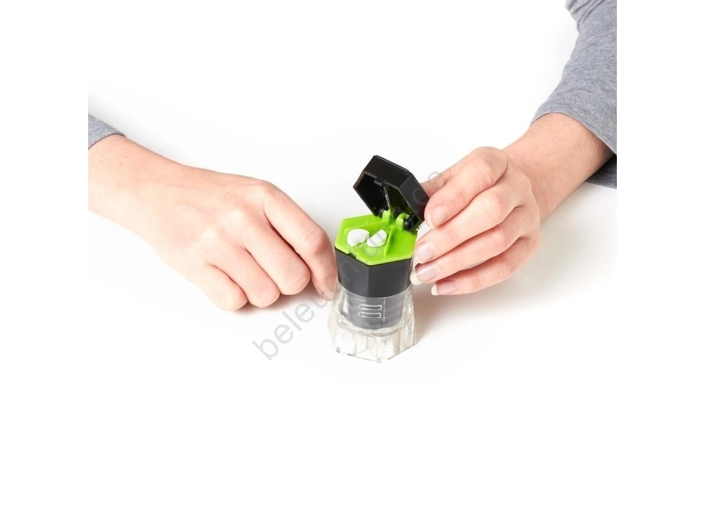 Tablettenzerkleinerer - wandelt Tabletten durch einfaches Aufschrauben des Oberteils in ein feines Pulver um;