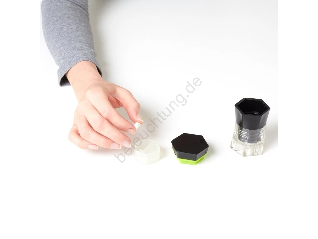 • Der Dosierer ist transparent gearbeitet, mit schwarzen und grünen Details, und erleichtert die Handhabung Ihrer Medikamente deutlich.