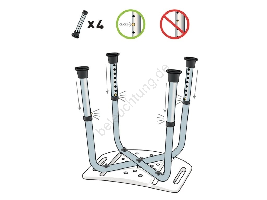 • Er verfügt über leichte, höhenverstellbare Aluminiumbeine.