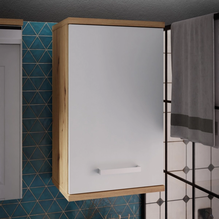 Wand-Badezimmerschrank VENOM weiß/Eiche Artisan