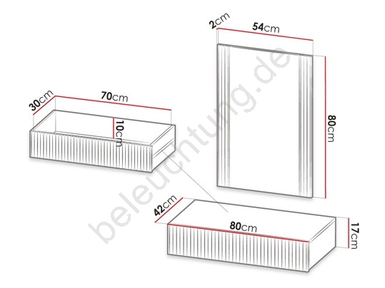 • Spiegelmaße: 54 x 80 x 2 cm.