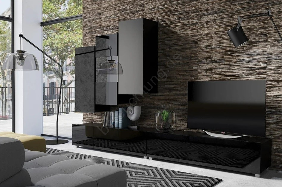 Wandschrank PAVO 117x45 cm glänzend schwarz/matt schwarz