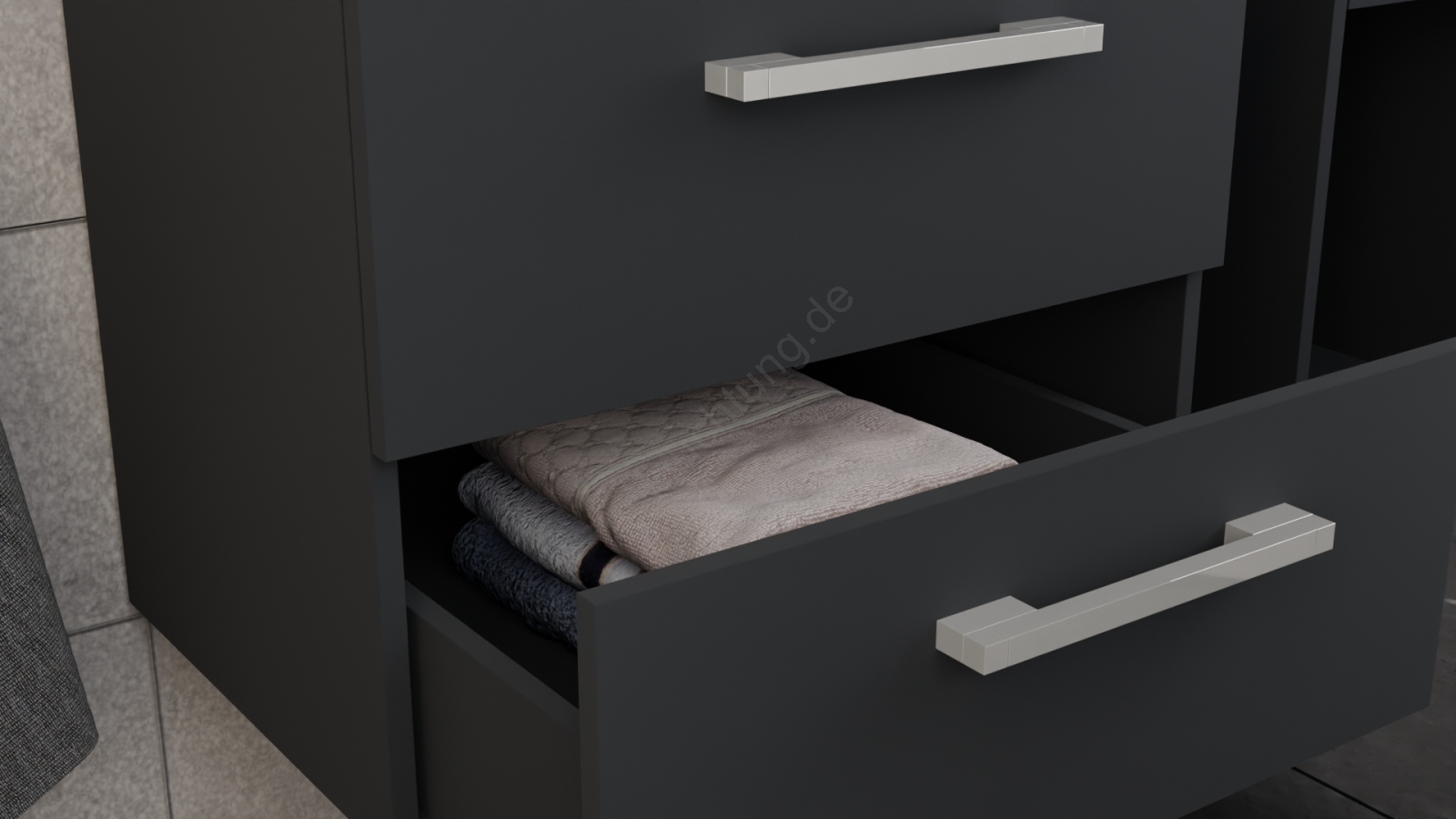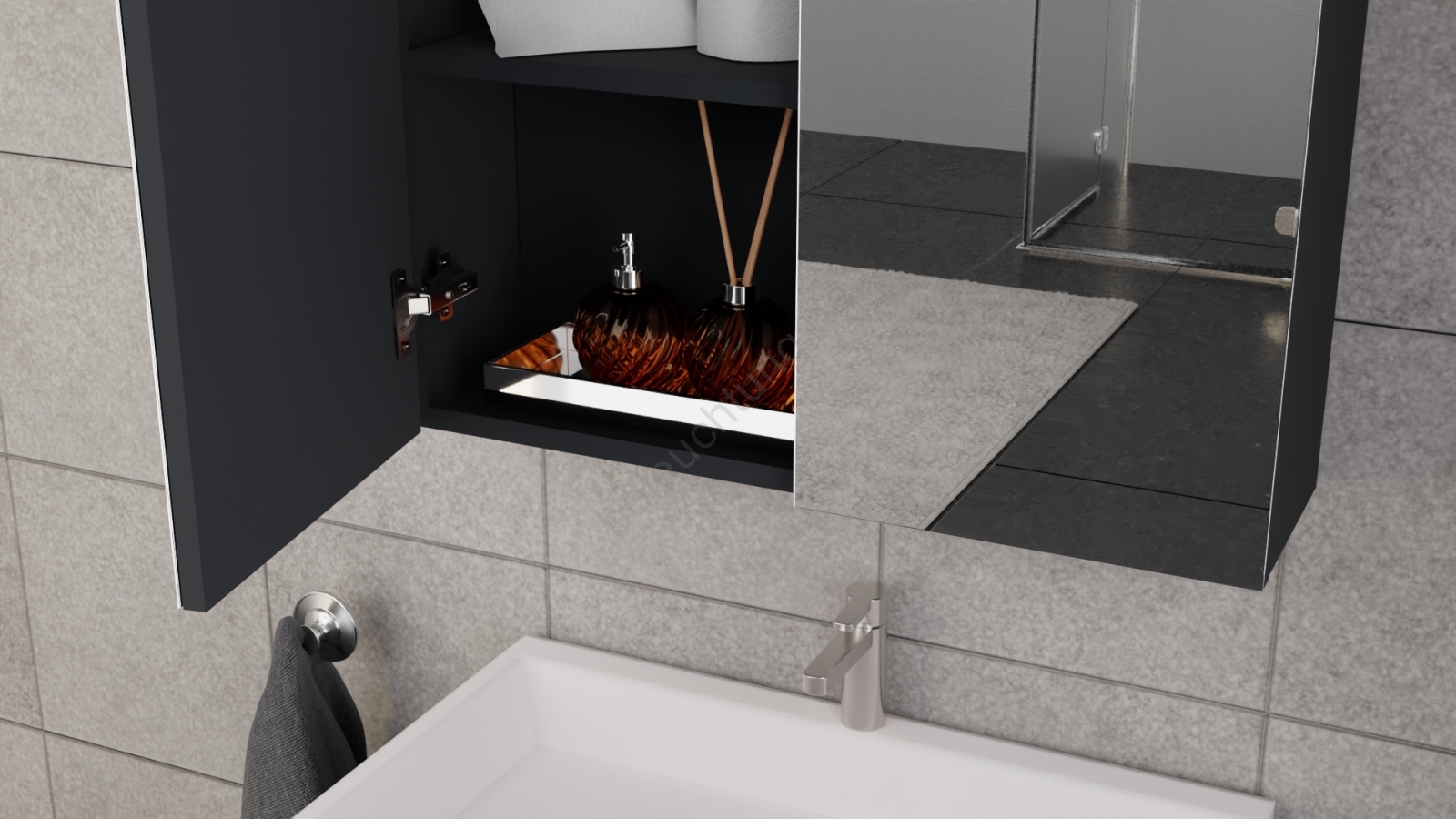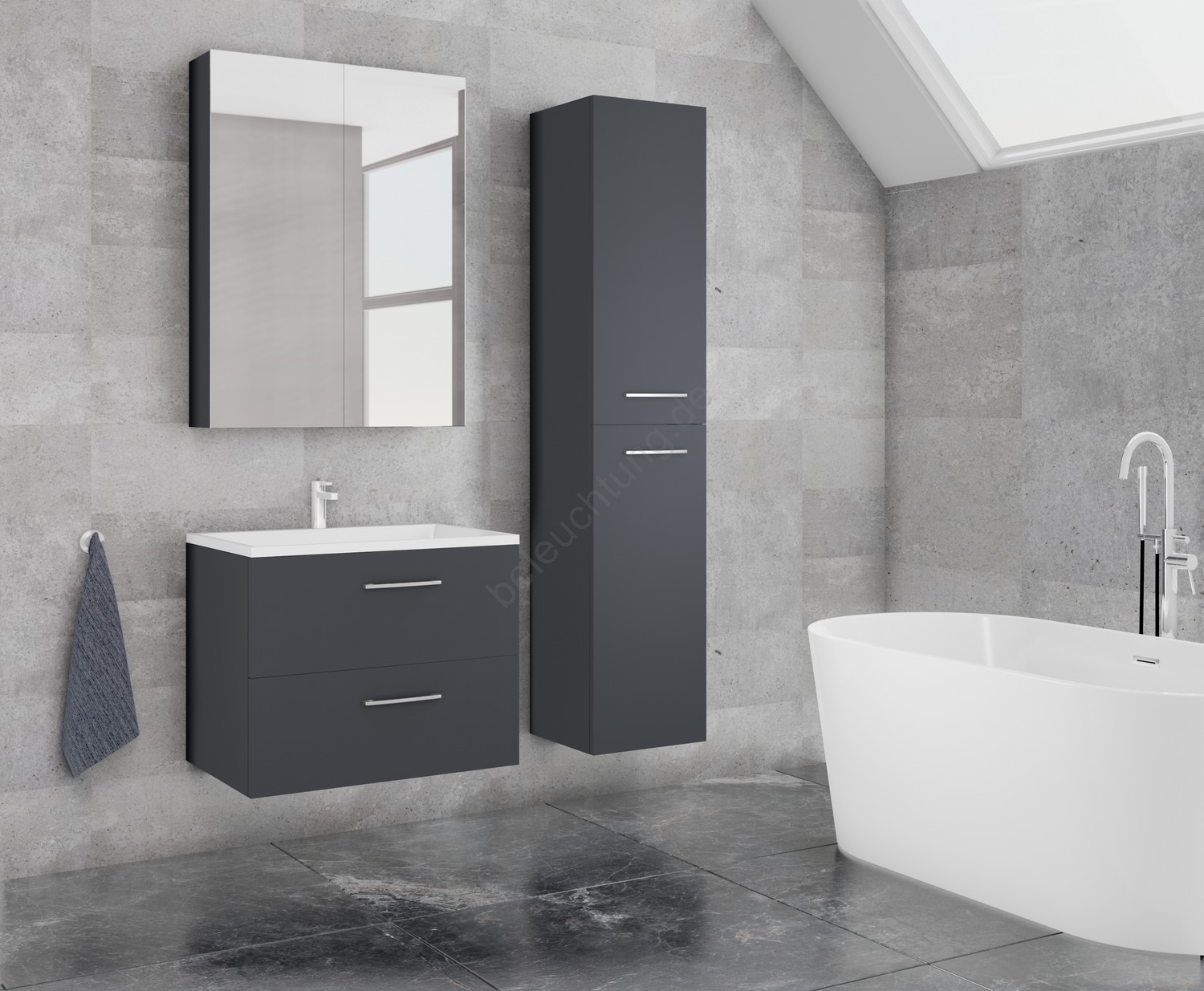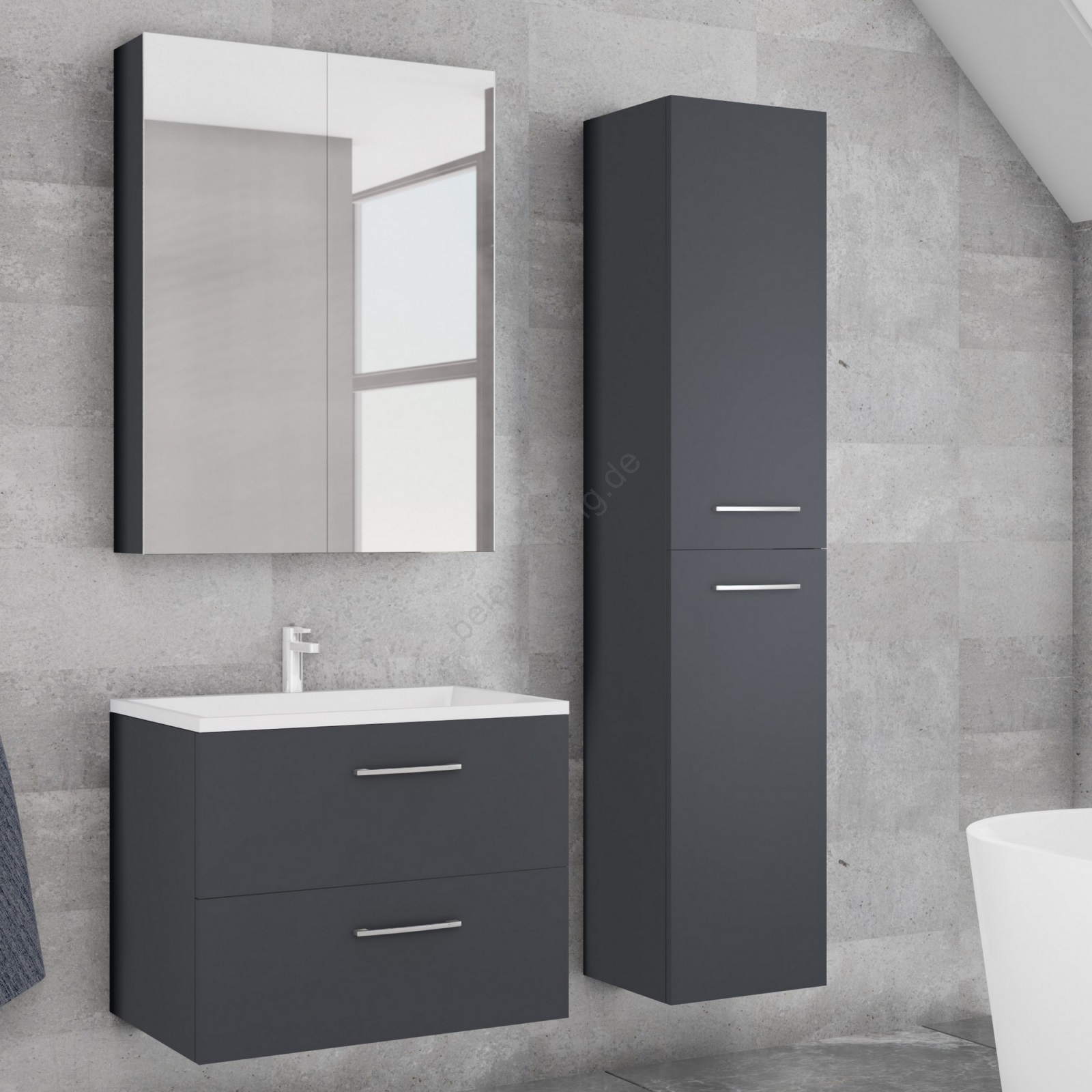 • Waschtischunterschrank KATE mit Waschbecken + Spiegelschrank + Hängeschrank, Anthrazit