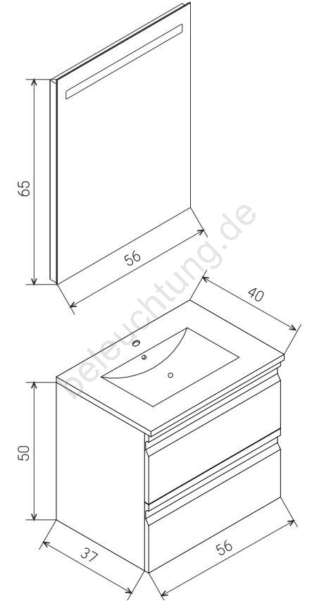 • Maße des Unterschranks: 50 x 40 x 56 cm.