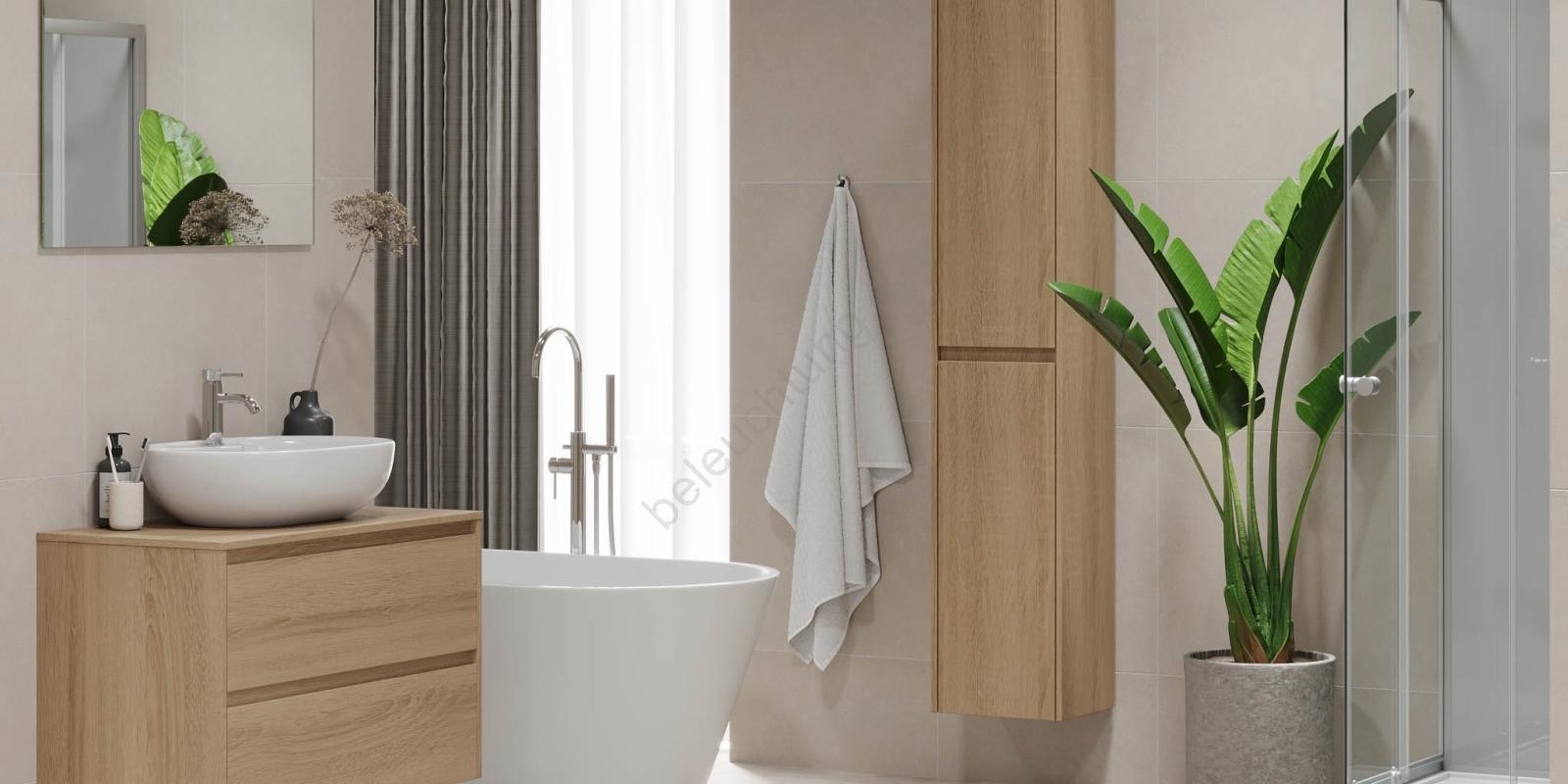 • Waschtischunterschrank TRONDHEIM für Waschbecken 90 cm, Eiche