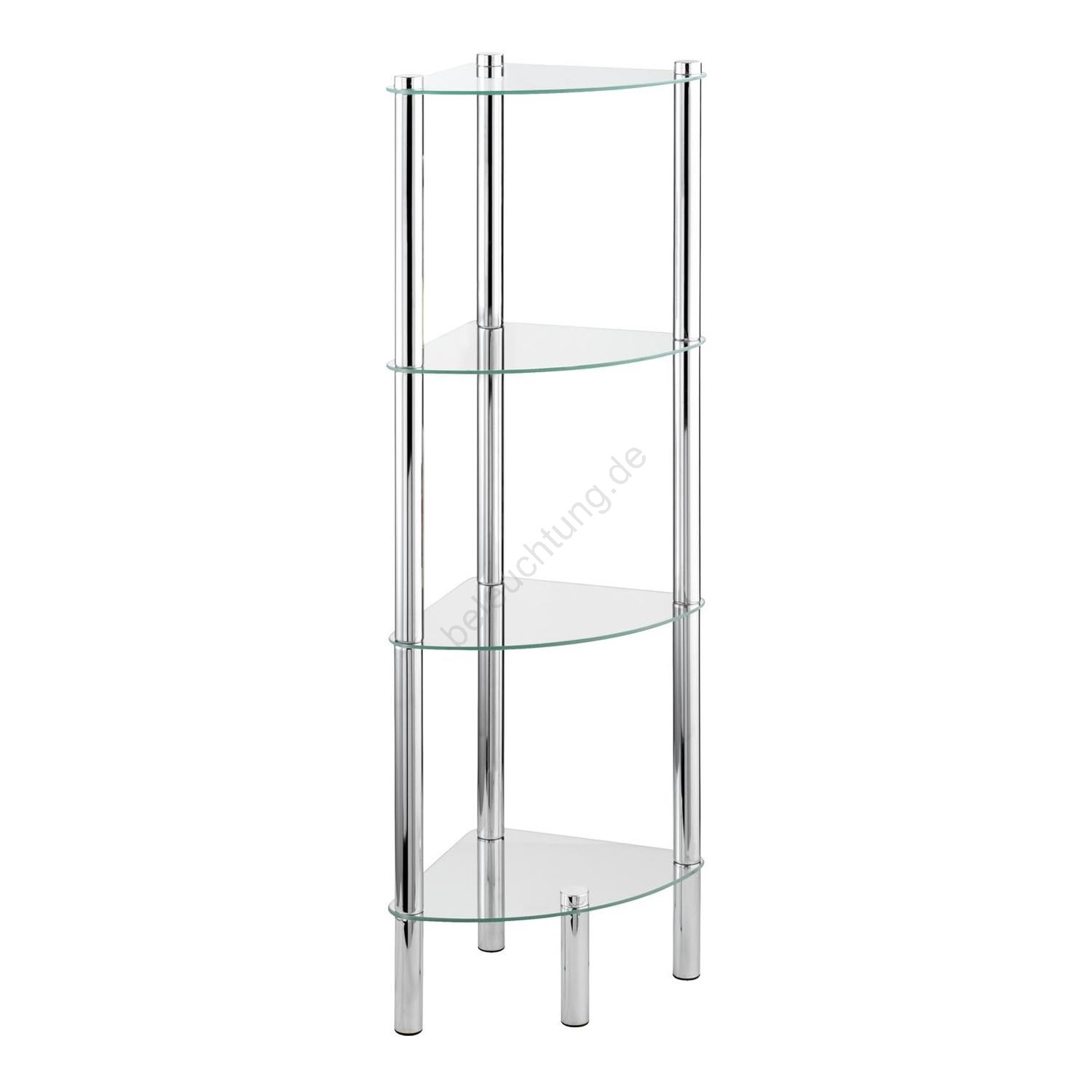 • Elegantes Eckregal mit 4 stabilen Regalböden aus robustem Sicherheitsglas.