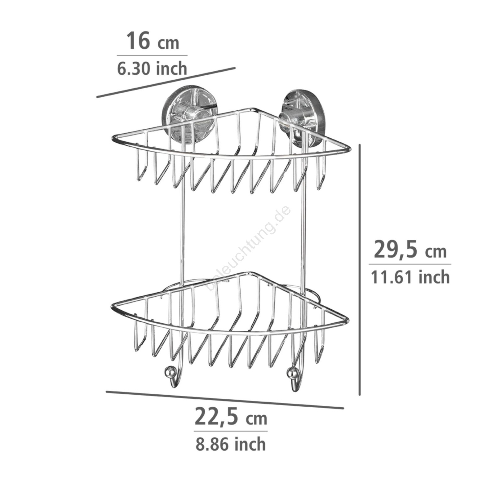 WENKO 20888100-Eckregal VACUUM-LOC rund STAHL 22,5x29,5 cm, Chrom glänzend
