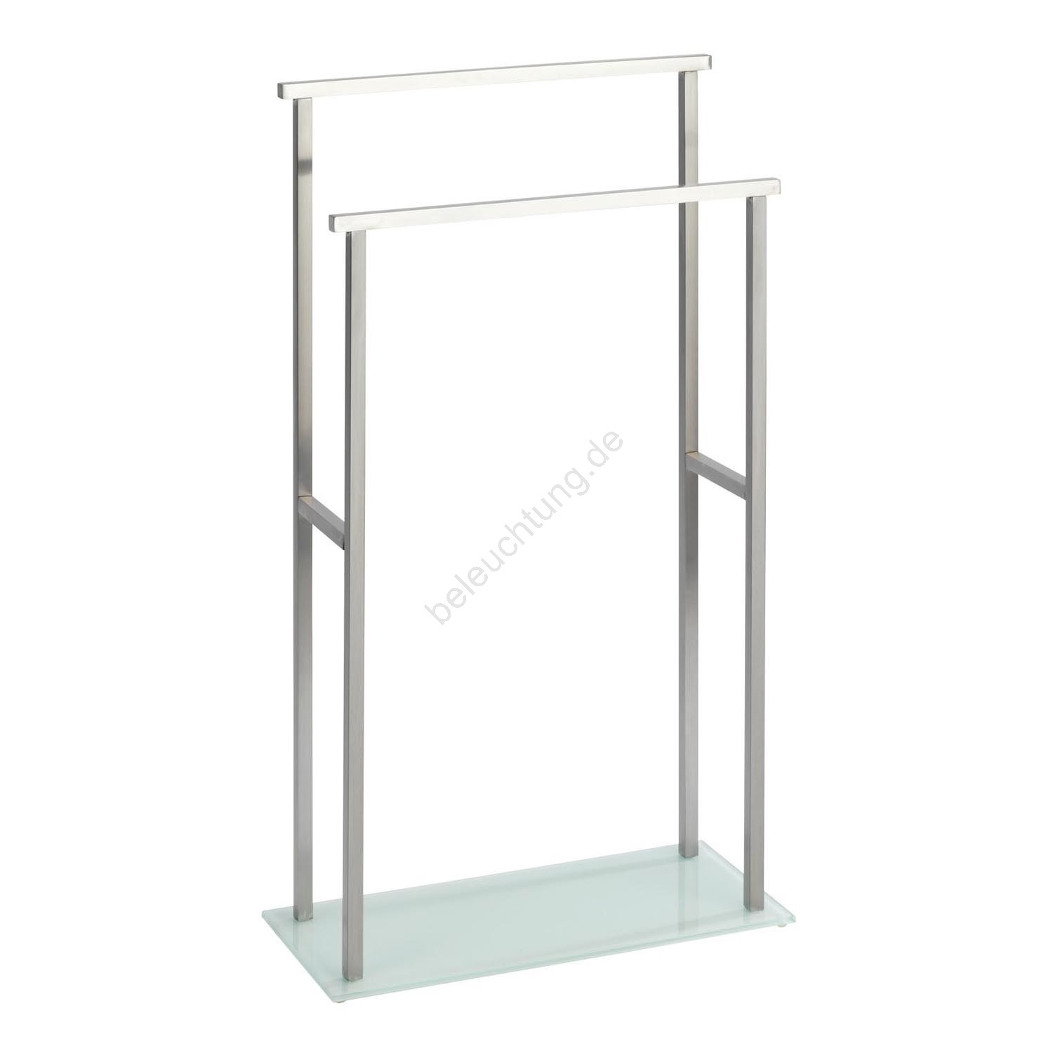 • Eleganter Handtuchständer aus Edelstahl und Sicherheitsglas.