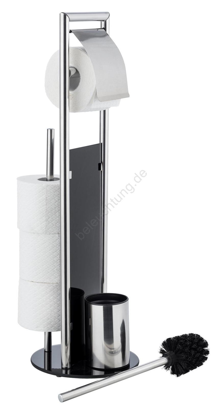 • Praktische 3-in-1-Lösung – Toilettenpapierhalter, Behälter für Ersatzrollen und WC-Bürste mit Halter.