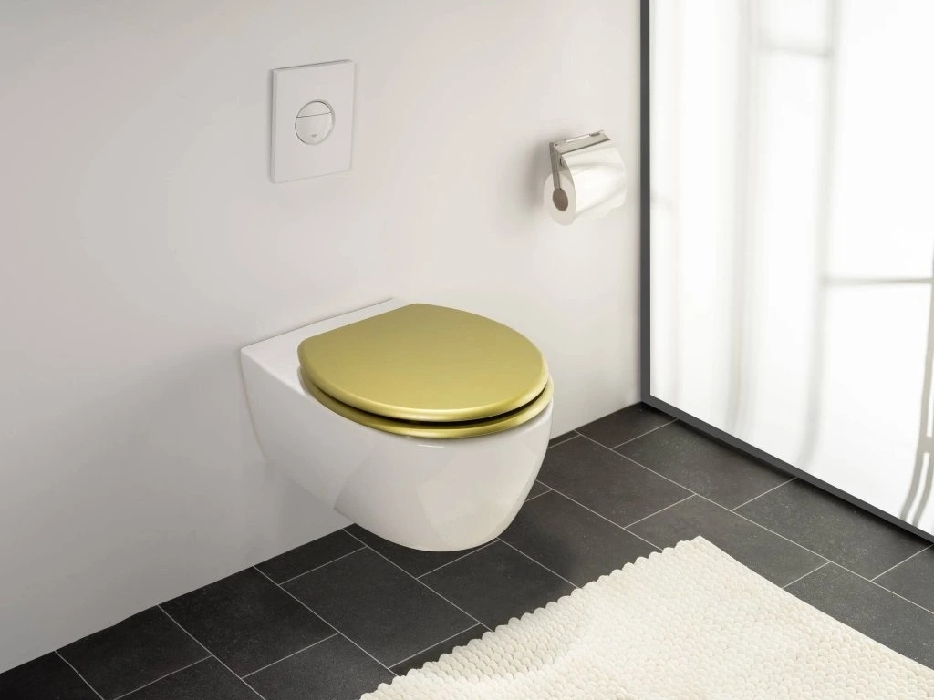 • Eleganter WC-Sitz in mattgoldener Ausführung verleiht dem Bad ein luxuriöses Erscheinungsbild.