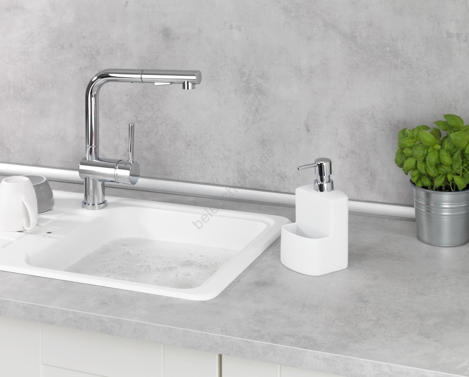 • Eleganter Spülmittelspender in klassischem Weiß.